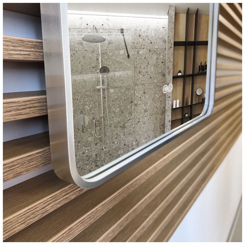 Mereo, oglindă pătrată LED 60x80 cm cu ramă din oțel periat, MER-CN171S