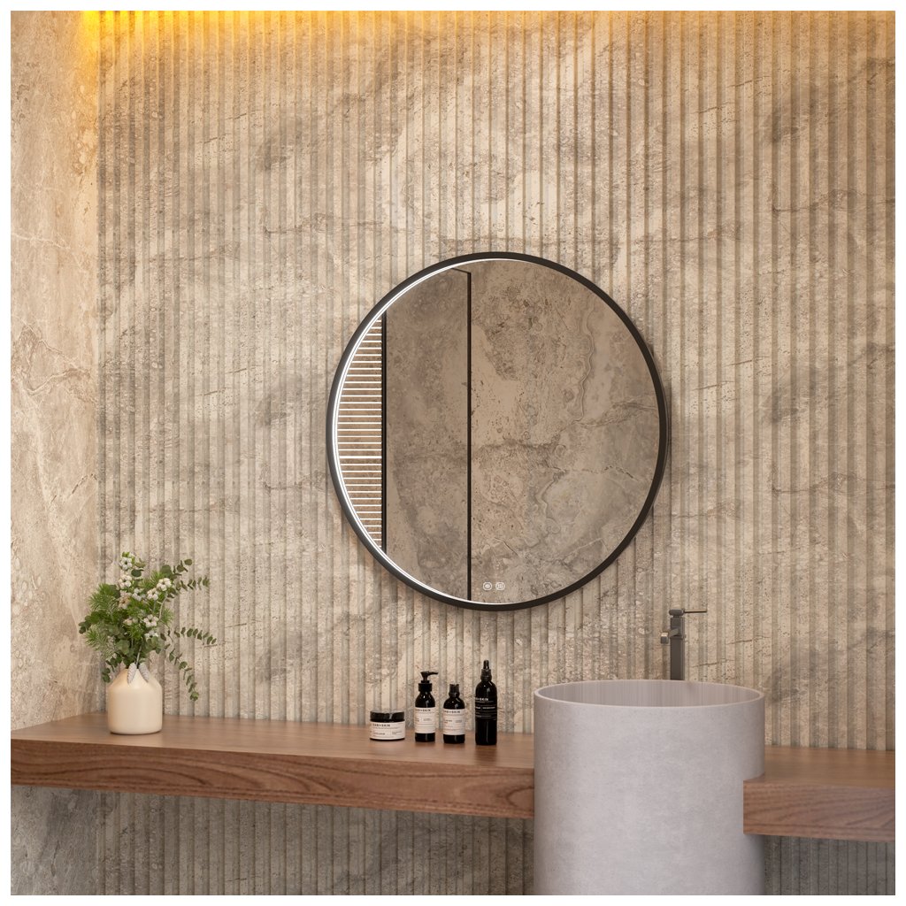 Oglinda eleganta cu iluminare LED. Oglinda este declanșată de un senzor tactil situat în partea de jos din față a oglinzii. Oglinda este prevazuta cu console (atât agatatoare, cat si carlige de perete adecvate) pentru agatarea verticala. Pentru oglinzile cu iluminare, vă recomandăm să plasați priza „în centrul oglinzii”. Lungimea cablului de alimentare este de 0,8 m, permițând o instalare convenabilă.Consumul de energie electrică Puterea este de 28 W.