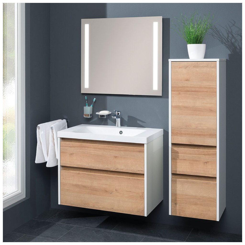 Mereo, Opto, dulap baie 125 cm înălțime, deschidere stânga, alb, stejar, alb/stejar, negru, MER-CN934L