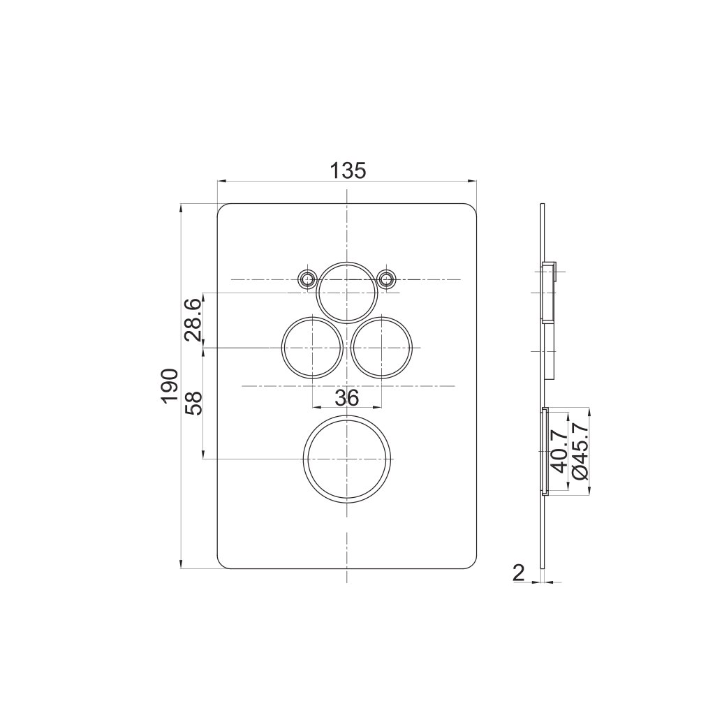 Mereo, robinet termostatic cu buton ascuns - 3 căi - capac pătrat, MER-CB60157TC