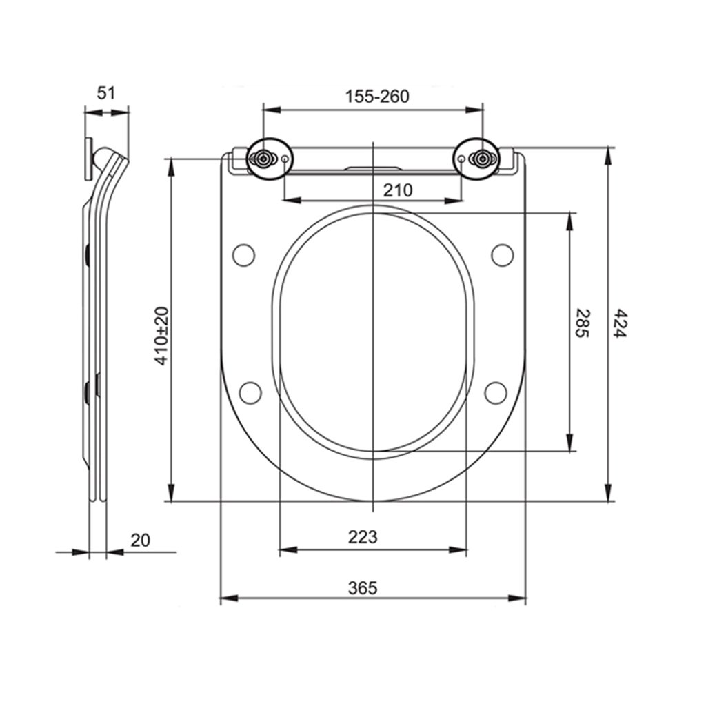 Mereo, scaun de toaletă SLIM cu închidere automată, MER-CSS116
