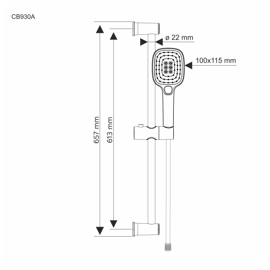Setul de duș se caracterizează printr-un design modern, variabilitate ridicată și, mai presus de toate, permite aproape orice combinație cu accesoriile programului de duș. Setul de duș include un cap de duș manual cu o singură poziție, un suport glisant și un furtun acoperit cu plastic gri argintiu de 150 cm lungime, cu sistem anti-răsucire. Furtunul este montat intre robinet si cap de dus. Datorită cursorului glisant, puteți regla înălțimea dușului după cum este necesar.Functii dus: