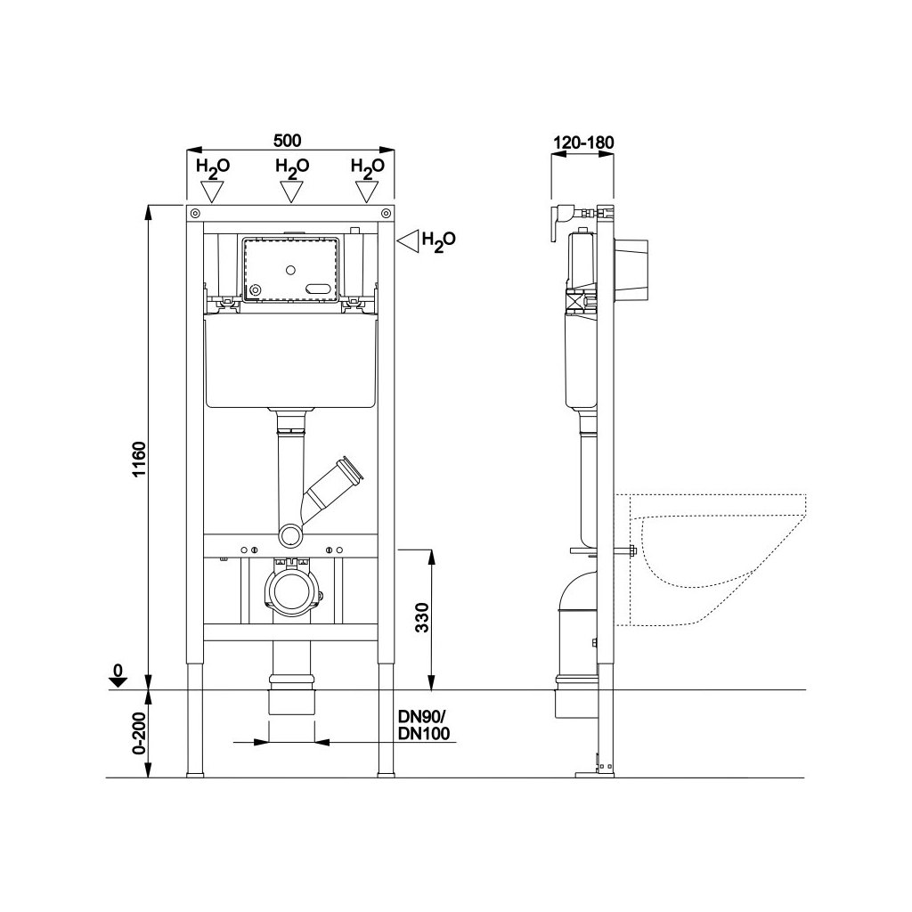 • Pentru montarea unei toalete montate pe perete cu o distanta de 18cm si 23cm