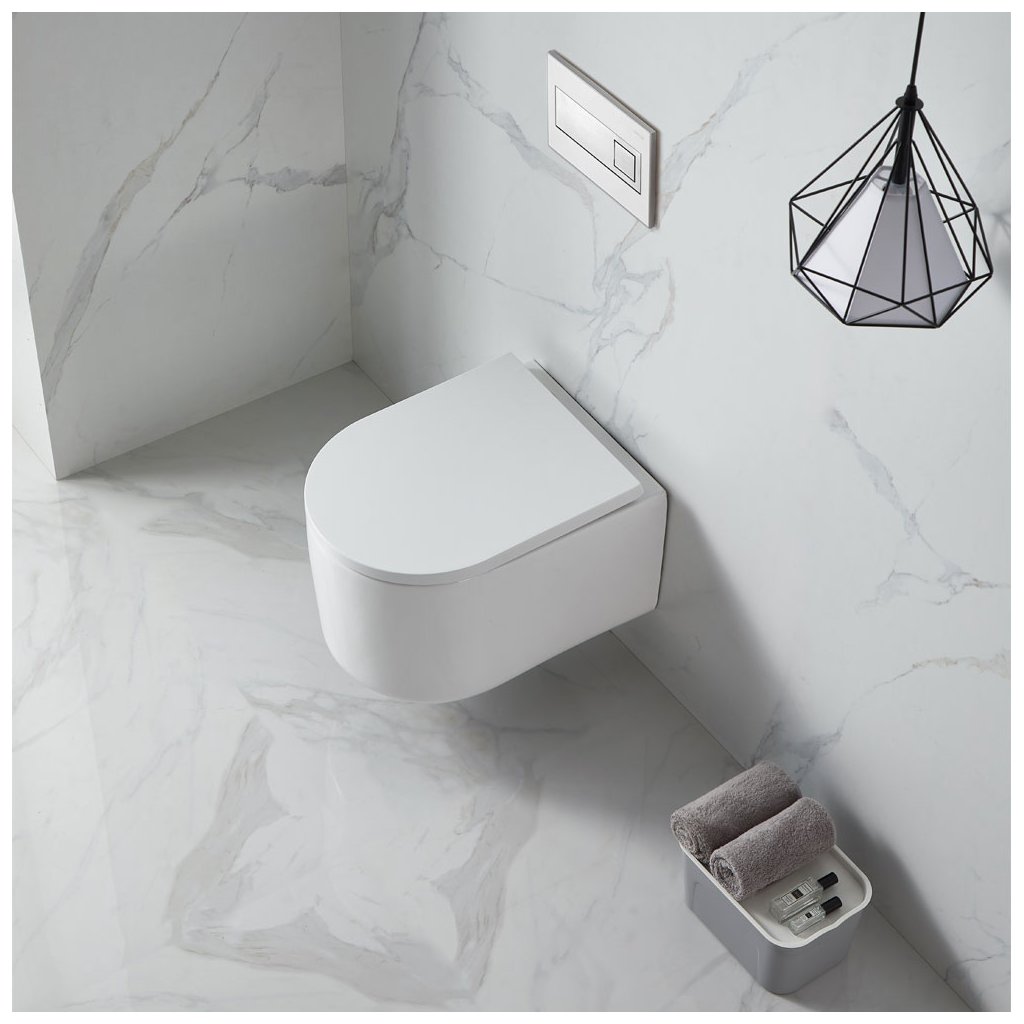 Mereo, toaletă suspendată cu glugă, FĂRĂ BORDE, 495x360x370, ceramică, incl. scaune CSS113S, MER-VSD84S1