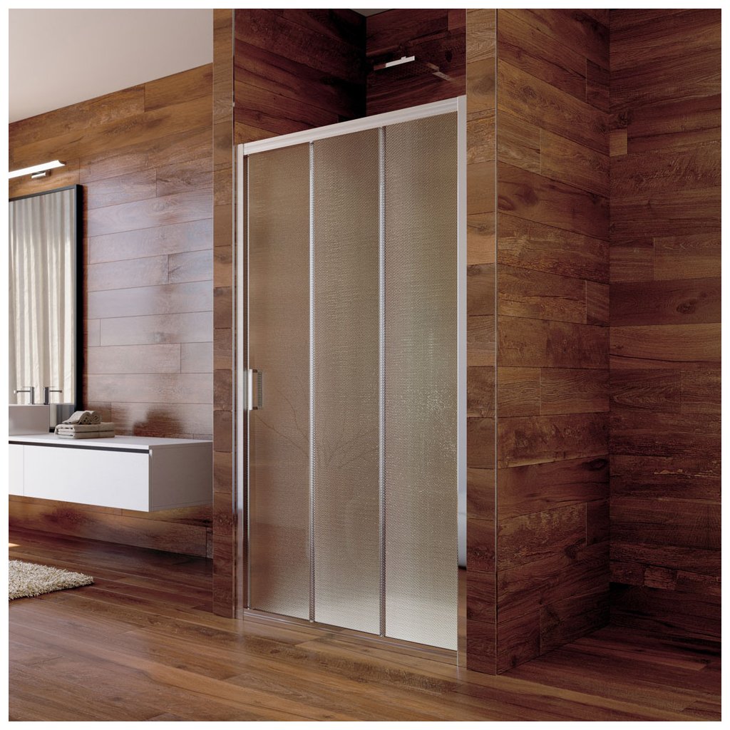 Mereo, Ușă de duș, LIMA, din trei părți, glisantă, crom ALU, sticlă Point, MER-CK80622K