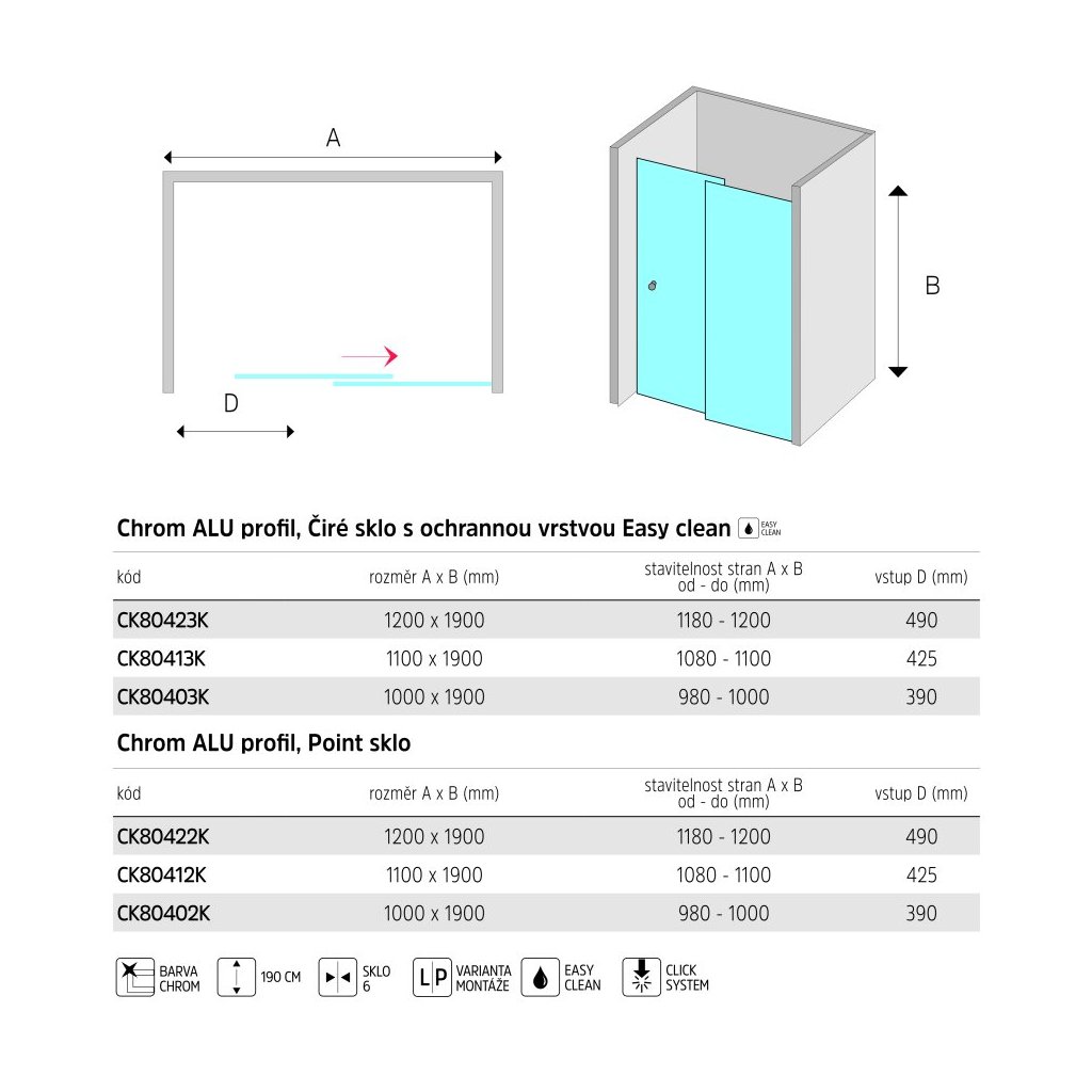 Mereo, Ușă de duș, LIMA, în două părți, glisantă, crom ALU, MER-CK80413K