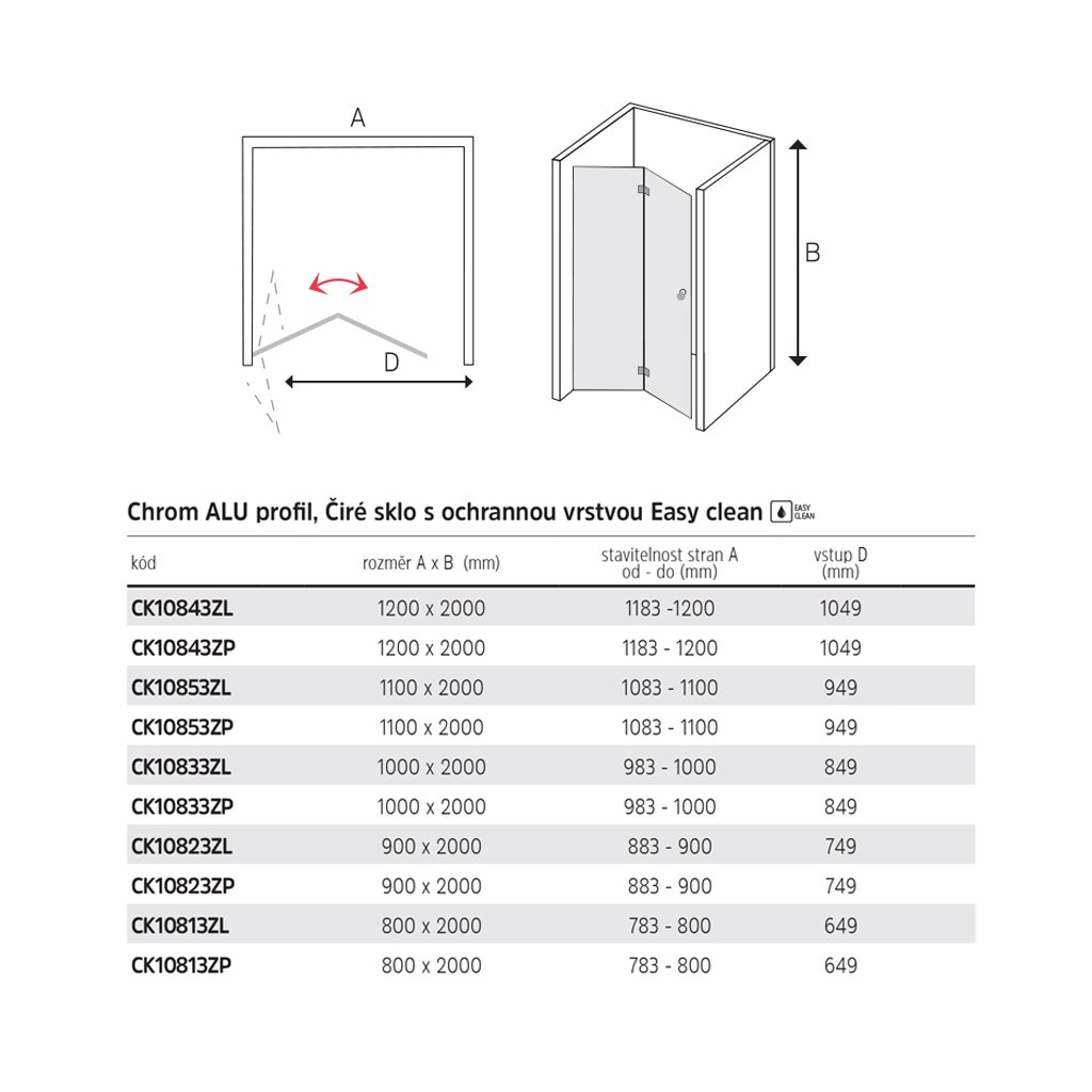 Populația mai înaltă va aprecia cu siguranță înălțimea colțurilor și a ușilor, care ajunge la 200 cm. Sticla securizată cu o grosime de 6 mm este tratată cu tratamentul de suprafață EASY CLEAN direct din fabrică. Acest strat folosește nanotehnologie, este hidrofug, previne depunerea murdăriei pe sticlă, iar sticla este astfel ușor de curățat. Stratul este rezistent la produsele de curățare utilizate în mod obișnuit pentru geamuri și umpluturi de sticlă.