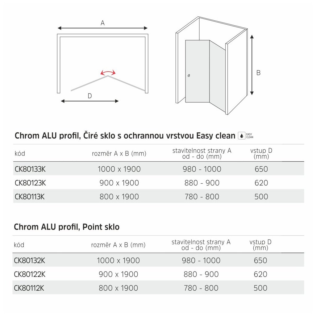 Mereo, usa de dus LIMA, plianta, crom ALU, sticla Point 6 mm, MER-CK80112K