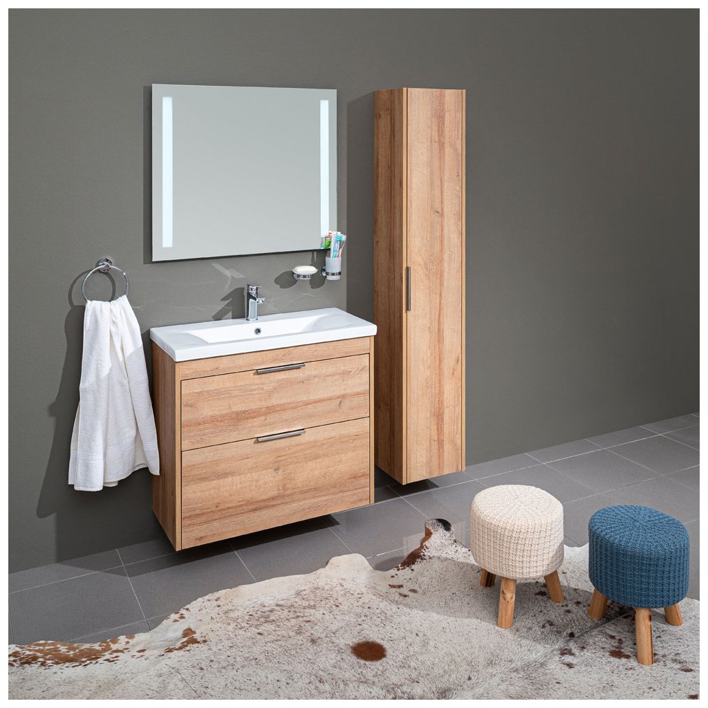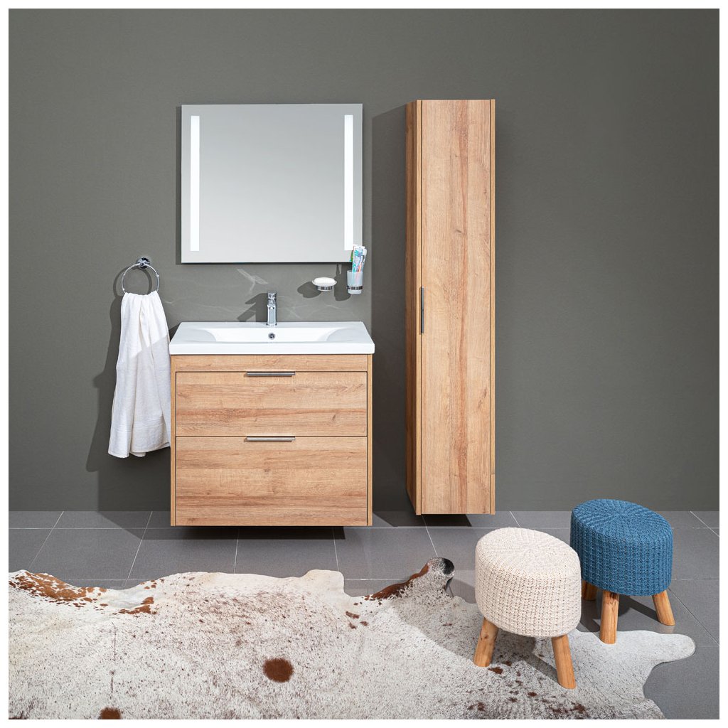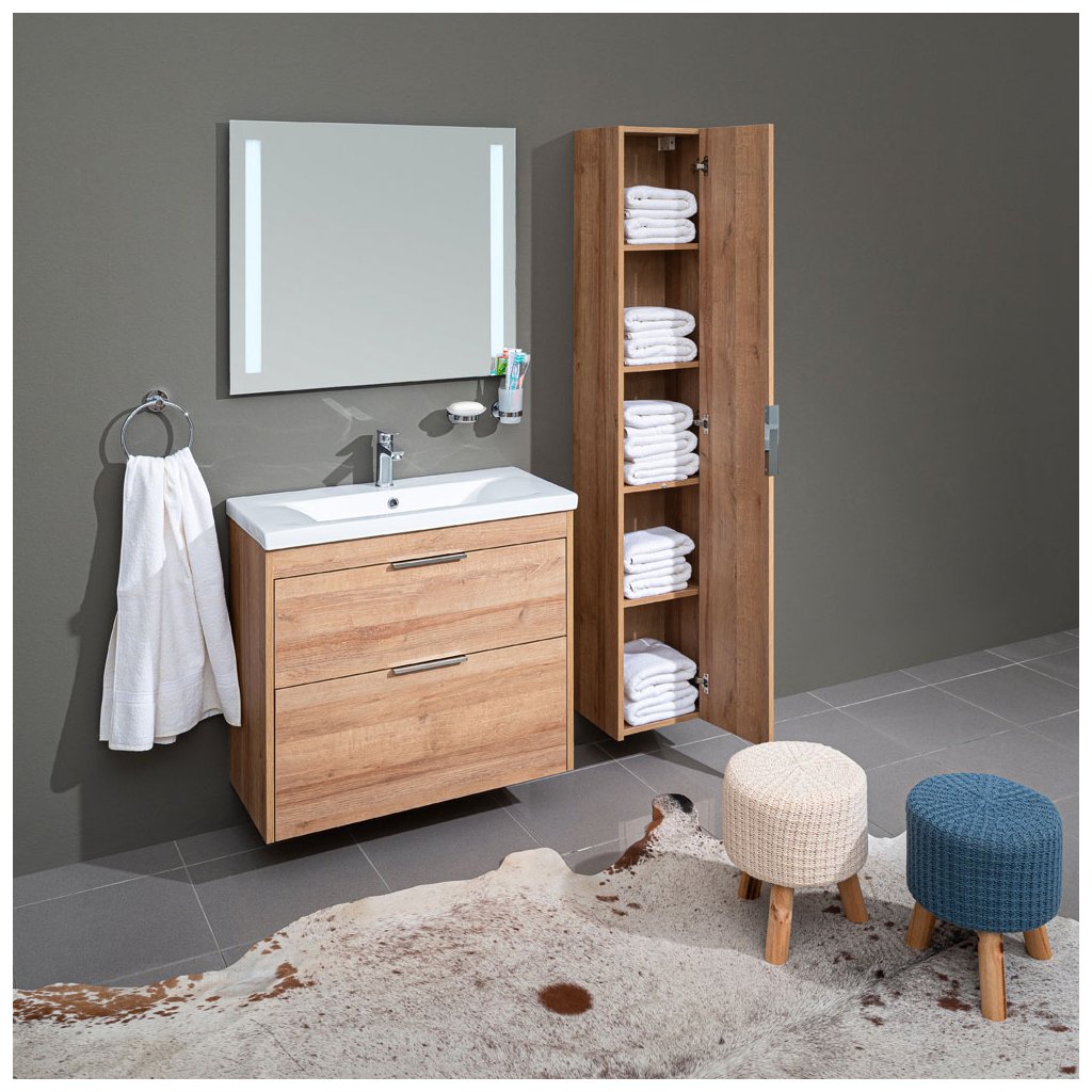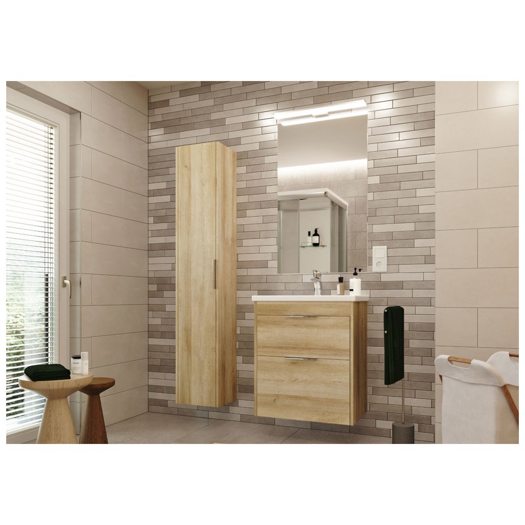 Mereo, Vigo, dulap de baie 170 cm înălțime, deschidere la stânga sau la dreapta, alb, stejar, MER-CN331
