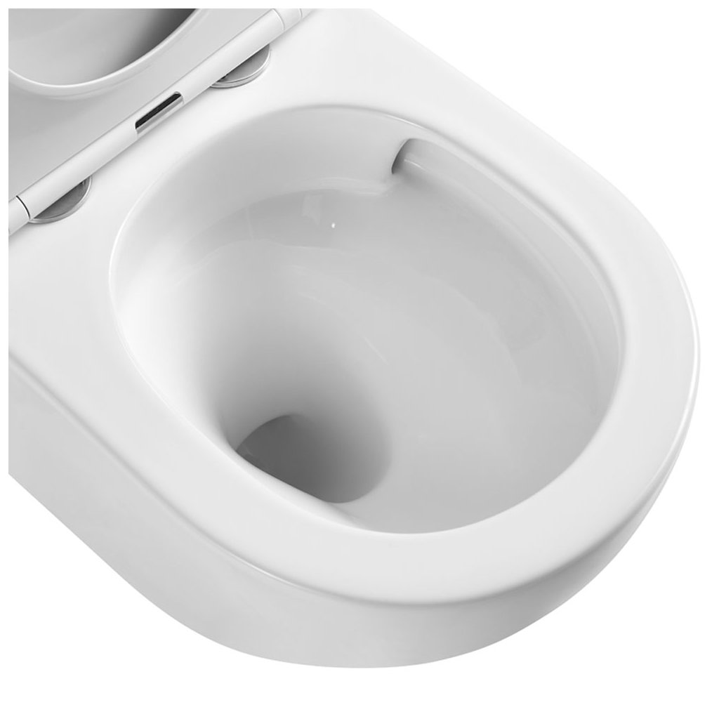 Rimless este o modalitate inovatoare de a spăla vasul de toaletă. Modul bine gândit de a conduce apa asigură spălarea eficientă a toaletei și, de asemenea, curățarea ușoară a vasului de toaletă.Datorită noii forme a vasului, nu este necesară curățarea canelurii de spălare de sub marginea vasului, care se folosește la toaletele clasice și unde s-ar putea acumula bacterii, murdărie și depuneri.