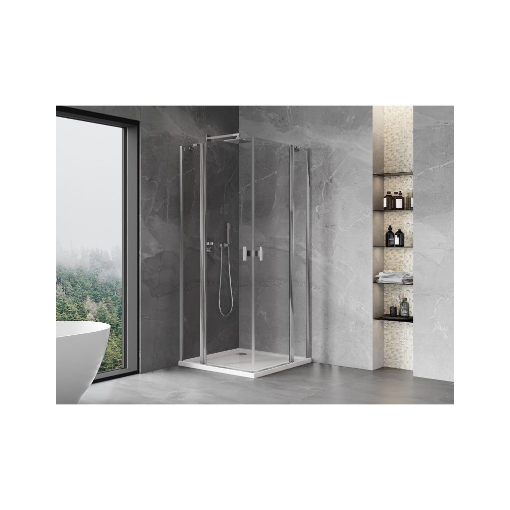 Mexen, Cabină de duș cu balamale Mexen Mist Duo 100 x 100 cm, transparentă, cromată - 8A4-100-100-01-00