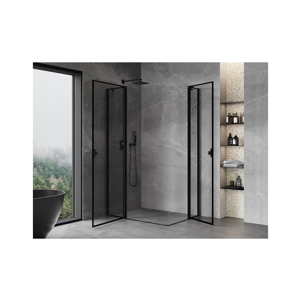 Mexen, Cabină de duș cu balamale Mexen Mist Duo 100 x 80 cm, cadru negru - 8A4-100L-080P-70-70