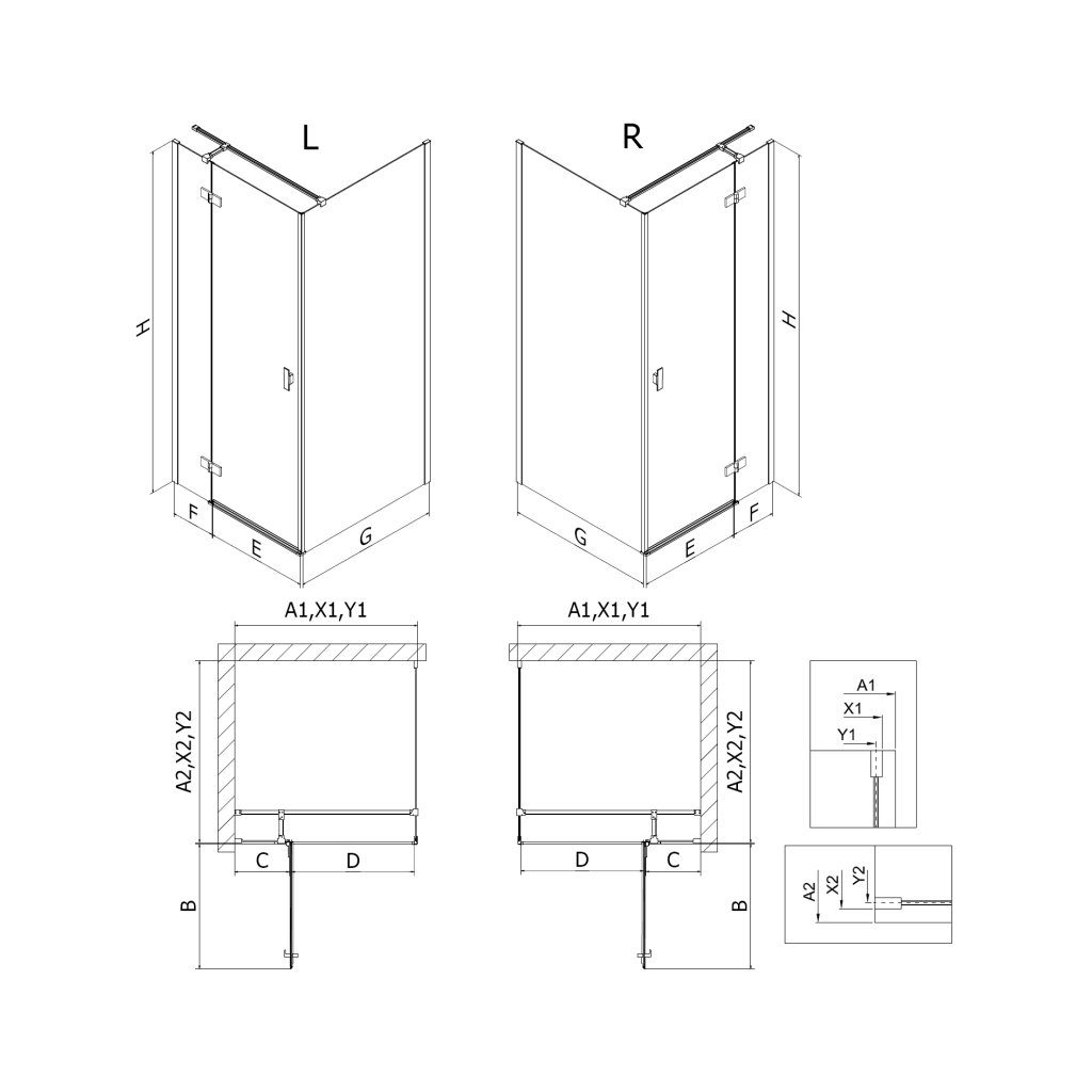 | Tip: | Rohový - 1-stranný, 1-krídlový s delenými dverami |