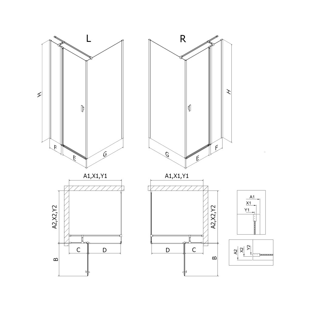 | Tip: | Rohový - 1-stranný, 1-krídlový s delenými dverami |