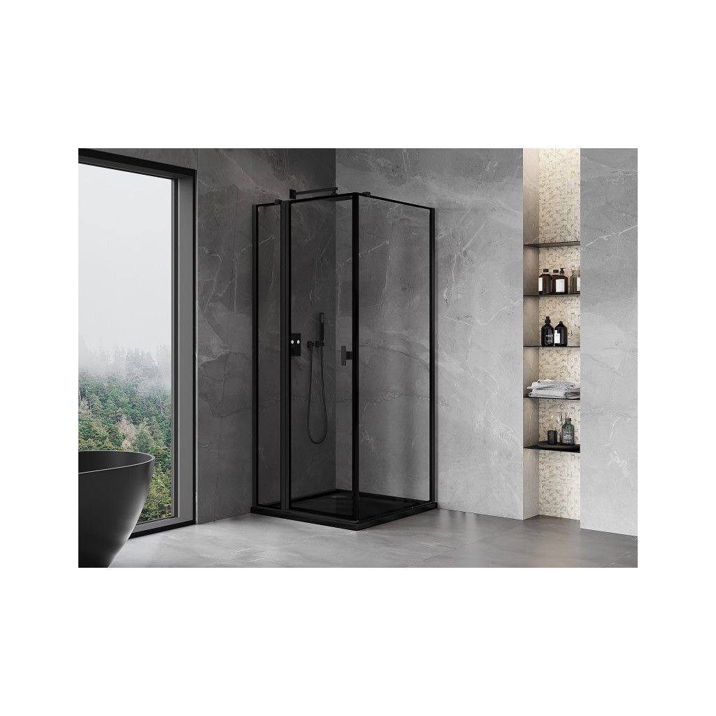 Mexen, Cabină de duș pliabilă Mexen Mist T stânga 95 x 95 cm, cadru negru - 8A4T-095-095-70-70-L