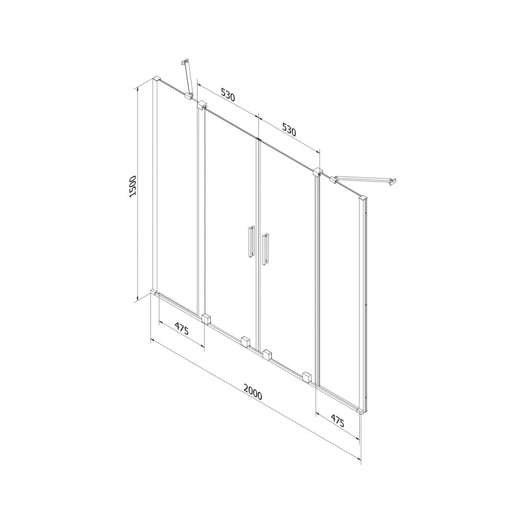 Mexen, Mexen Velar Duo paravan glisant pentru baie cu 2 aripi 200 x 150 cm, bruma, negru - 896-200-000-32-70