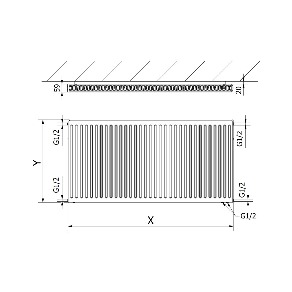 Mexen, Radiator panou Mexen CV11 600 x 3000 mm, conexiune inferioară, 2800 W, alb - W611-060-300-00