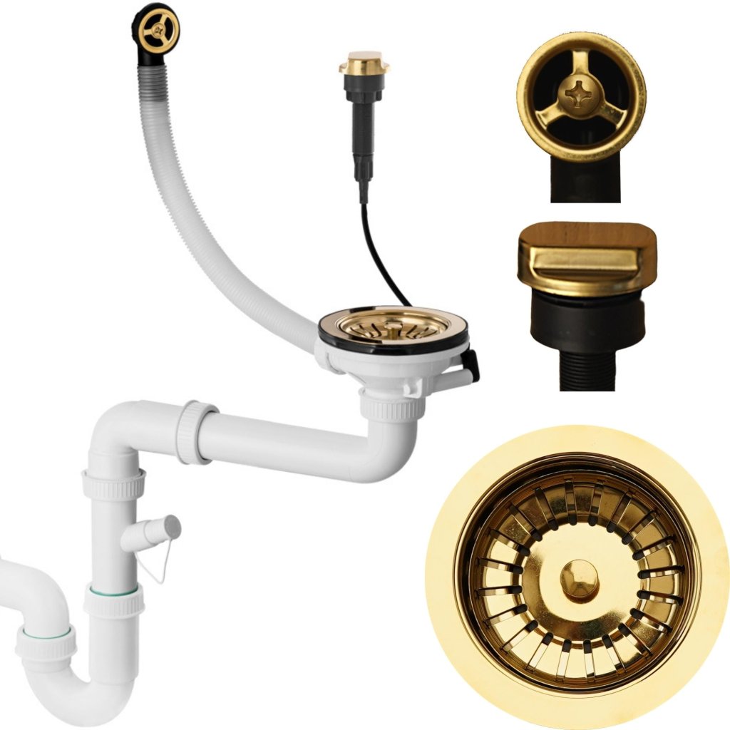 Mexen, Sifon cu deșeuri automate pentru chiuvetă de bucătărie cu 1 cameră, auriu lucios, 66911-50