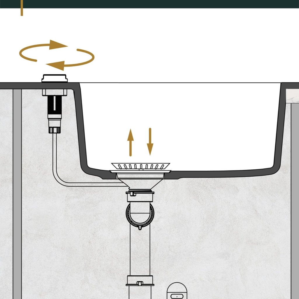 Butonul practic pentru inchiderea si deschiderea scurgerii este o alternativa convenabila la dopul clasic. Cu o singură mișcare, puteți bloca scurgerea și mențineți camera bine închisă atunci când spălați vase.