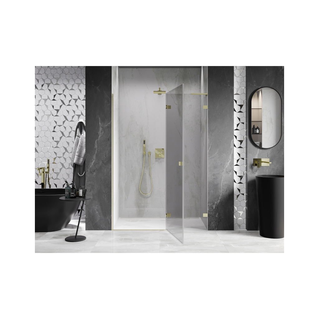 Mexen, Ușă de duș cu balamale Mexen Lunar L, dreapta, 135 cm, transparentă, auriu periat - 834L-135-000-55-00-P