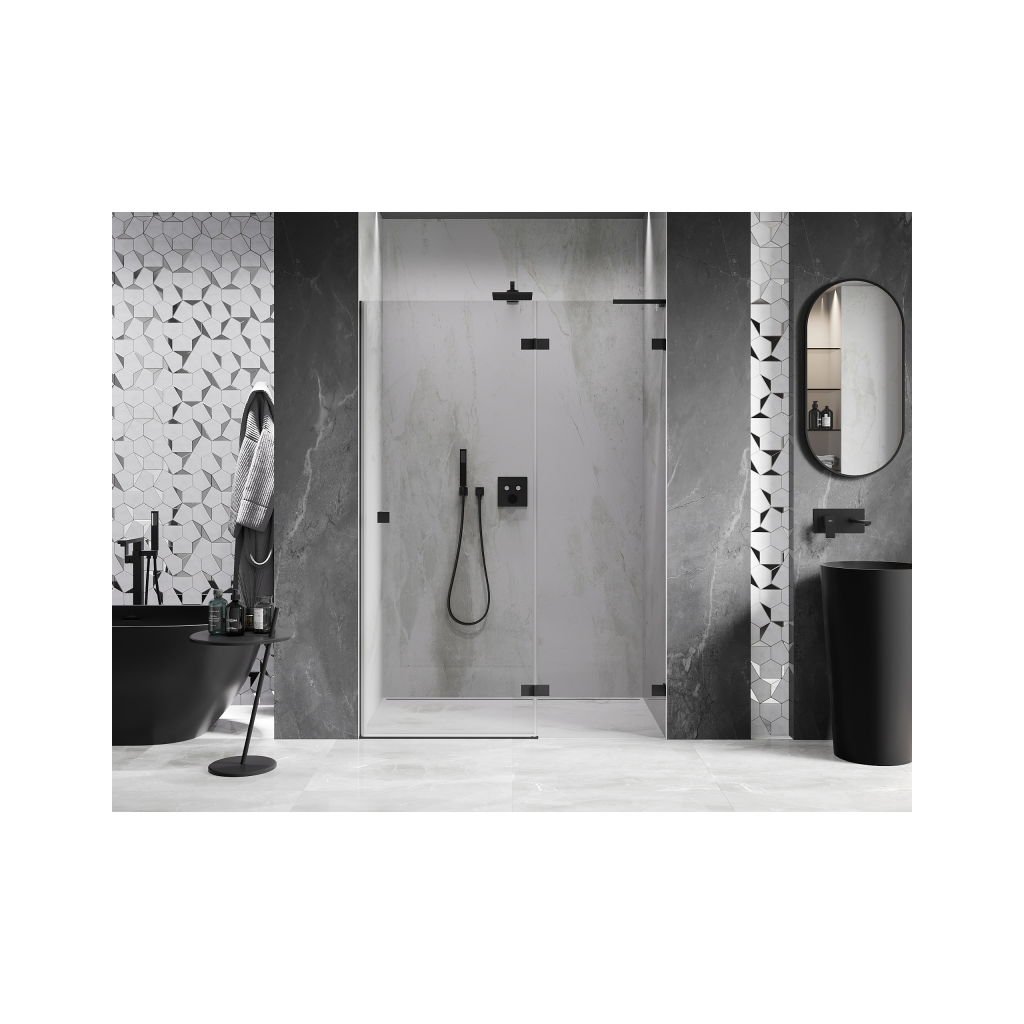 Mexen, Ușă de duș cu balamale pe dreapta Mexen Lunar L 140 cm, transparentă, neagră - 834L-140-000-70-00-P
