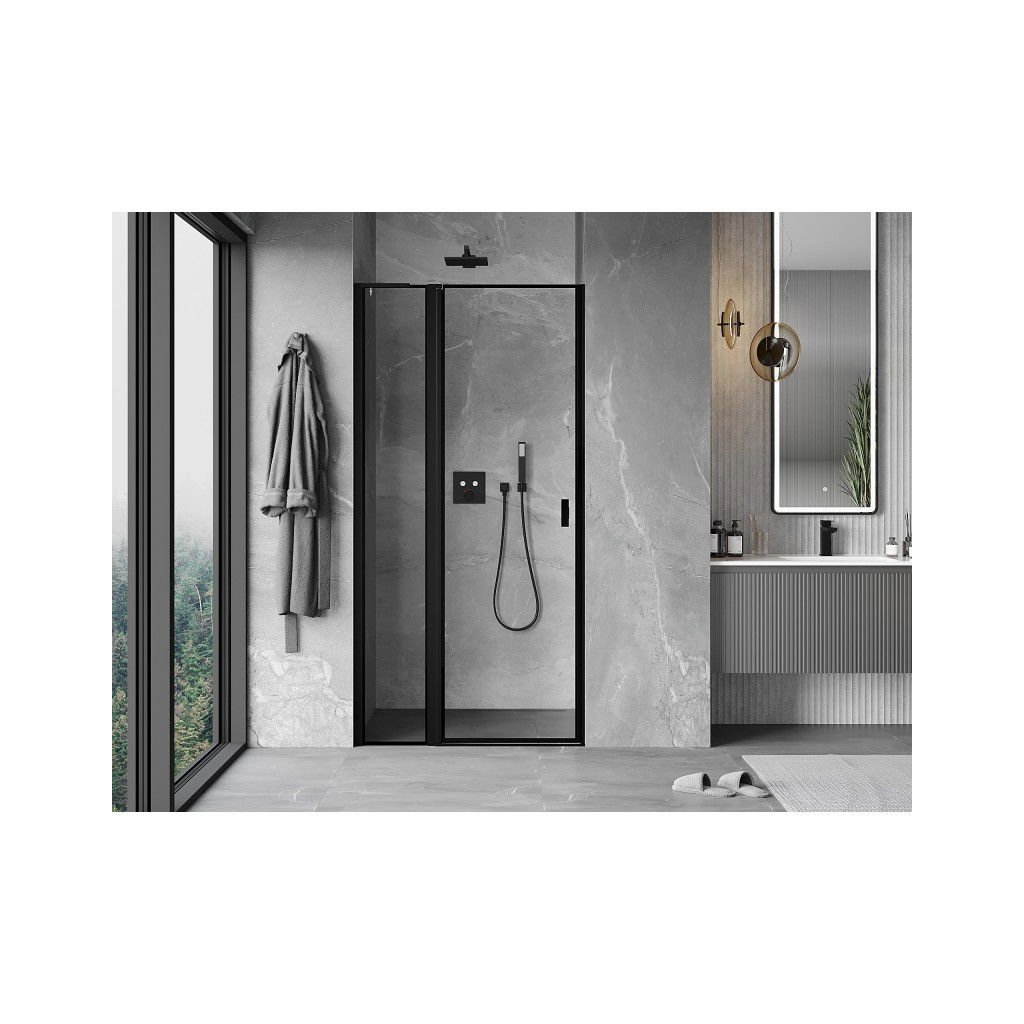 Mexen, Ușă de duș cu balamale pe stânga Mexen Mist L 110 cm, cadru negru - 8A4L-110-000-70-70-L