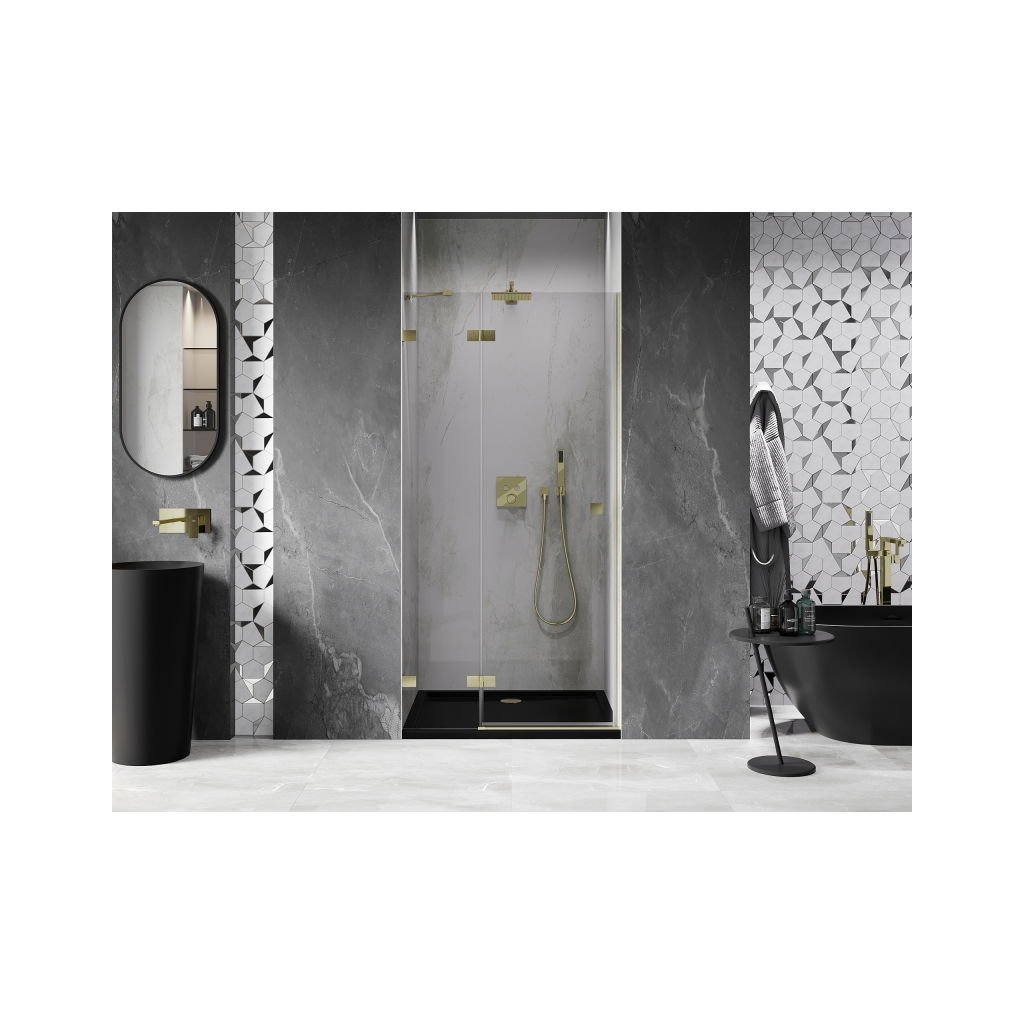 Mexen, Ușă de duș pivotantă Mexen Lunar, stânga, 75 cm, transparentă, auriu periat - 834-075-000-55-00-L