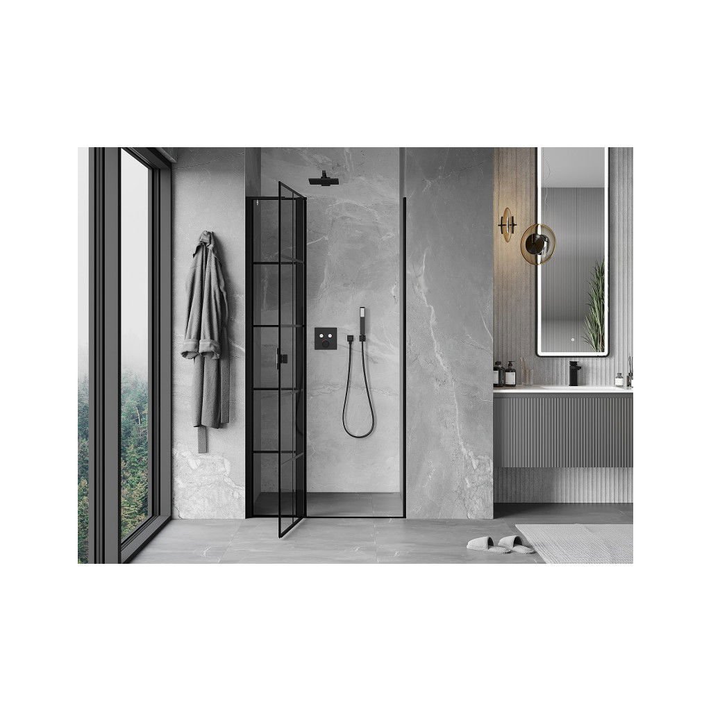 Mexen, Ușă de duș pivotantă Mexen Mist L, stânga, 115 cm, grilă neagră - 8A4L-115-000-70-77-L