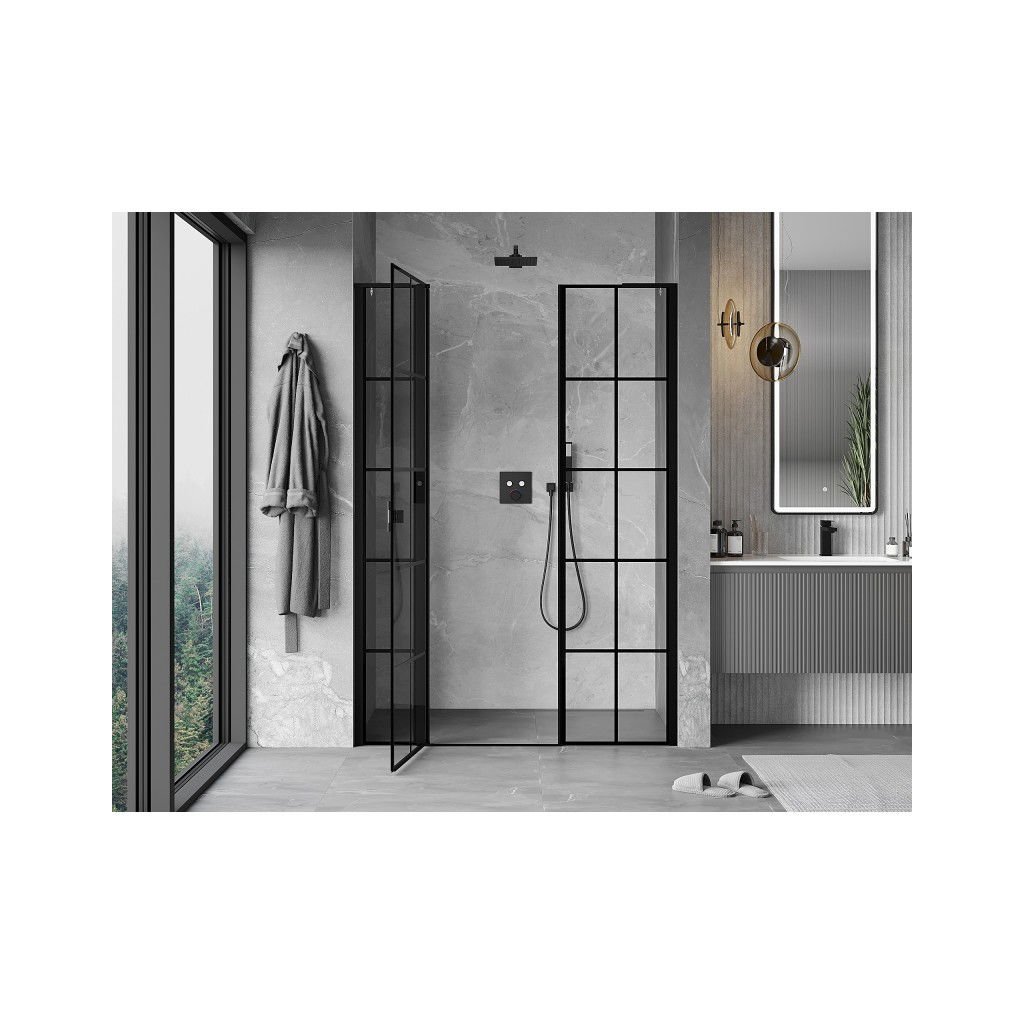 Mexen, Ușă de duș pivotantă Mexen Mist L, stânga, 140 cm, grilă neagră - 8A4L-140-001-70-77-L