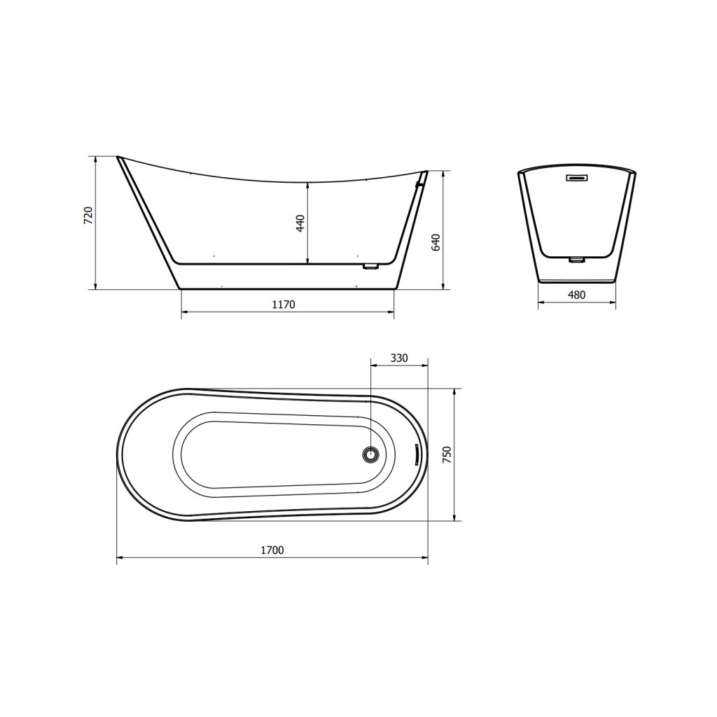 Mexen Alta, cadă de sine stătătoare 170 x 75 cm, alb-negru, preaplin negru mat, 52141707575-70