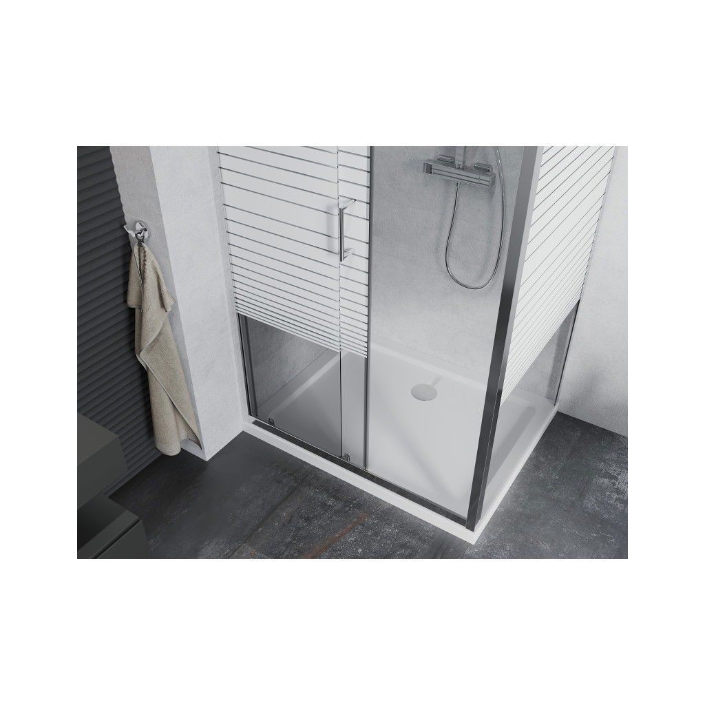 Mexen Apia, cabină de duș cu ușă glisantă 100 (uşă) x 70 (perete) cm, sticlă cu dungi incolore 6 mm, profil crom + cadă de duș subțire 5 cm, 840-100-070-01-20-4010