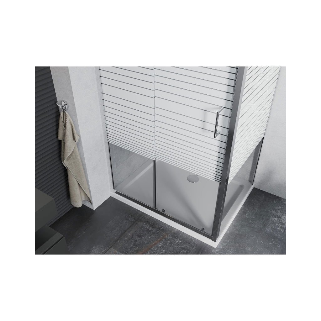 Mexen Apia, cabină de duș cu ușă glisantă 100 (uşă) x 80 (perete) cm, sticlă cu dungi incolore 6 mm, profil crom + cadă de duș subțire 5 cm, 840-100-080-01-20-4010