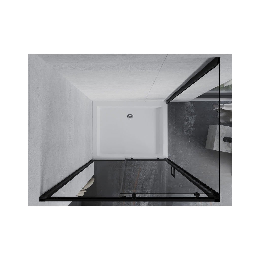Mexen Apia, cabină de duș cu ușă glisantă 120 (uşă) x 80 (perete) cm, sticlă transparentă 6 mm, profil negru + cadă de duș RIO albă, 840-120-080-70-00-4510
