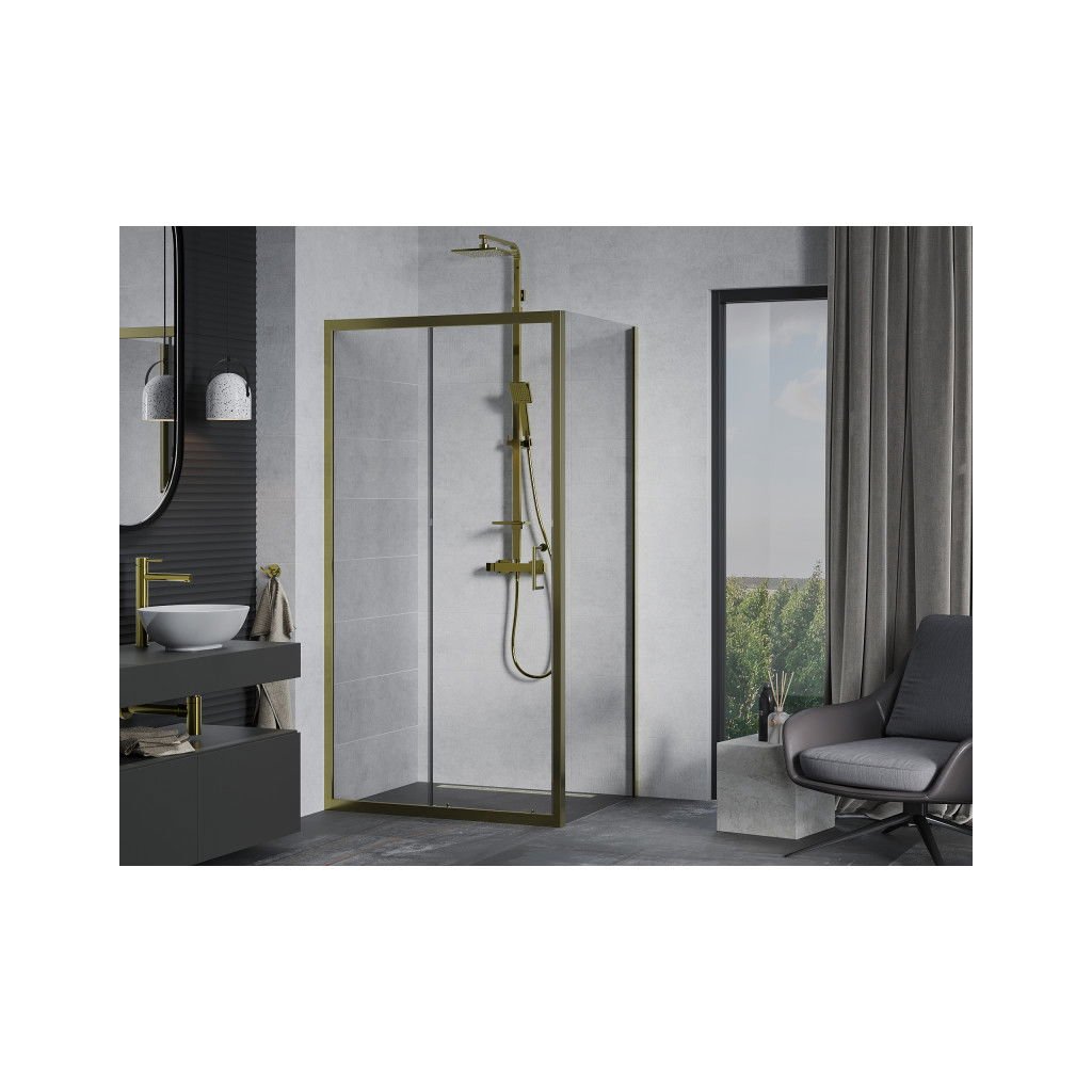 Cabina de dus Mexen Apia cu usa culisanta 120 (usa) x 90 (perete) cm, sticla transparenta 5mm, profil auriu, 840-120-090-50-00