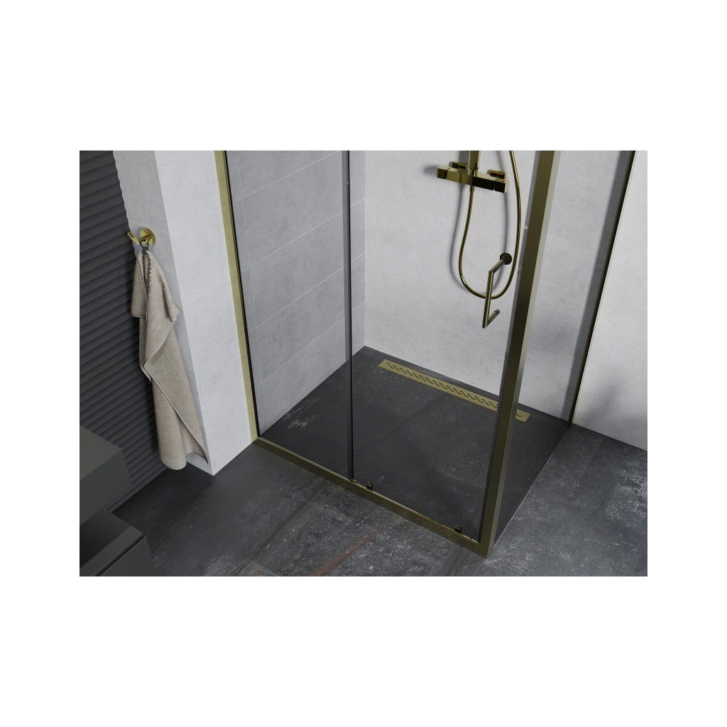 Mexen Apia, cabină de duș cu ușă glisantă 125 (uşă) x 90 (perete) cm, sticlă transparentă 6 mm, profil auriu, 840-125-090-50-00