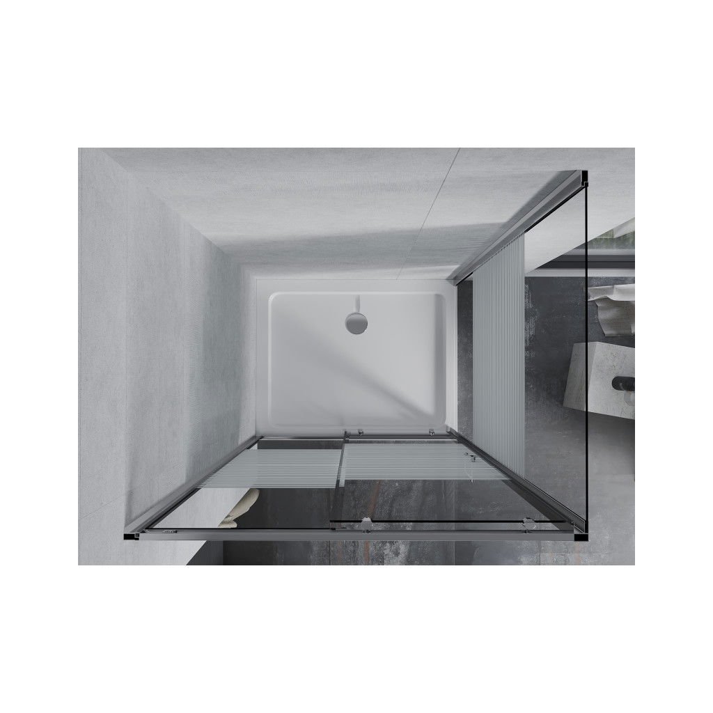 Mexen Apia, cabină de duș cu ușă glisantă 140 (uşă) x 100 (perete) cm, sticlă cu dungi incolore 6 mm, profil crom + cadă de duș subțire 5 cm, 840-140-100-01-20-4010