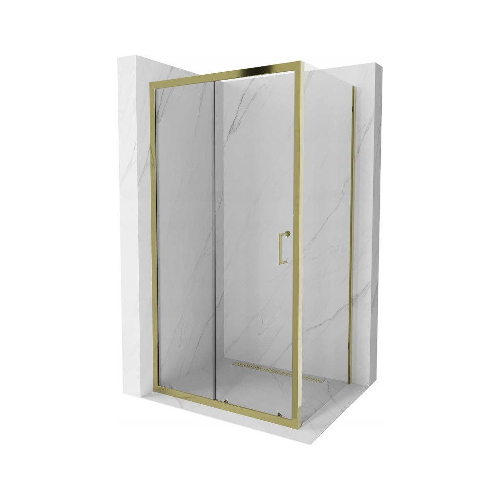 Cabina de dus Mexen Apia cu usa culisanta 95 (usa) x 70 (perete) cm, sticla transparenta 5mm, profil auriu, 840-095-070-50-00