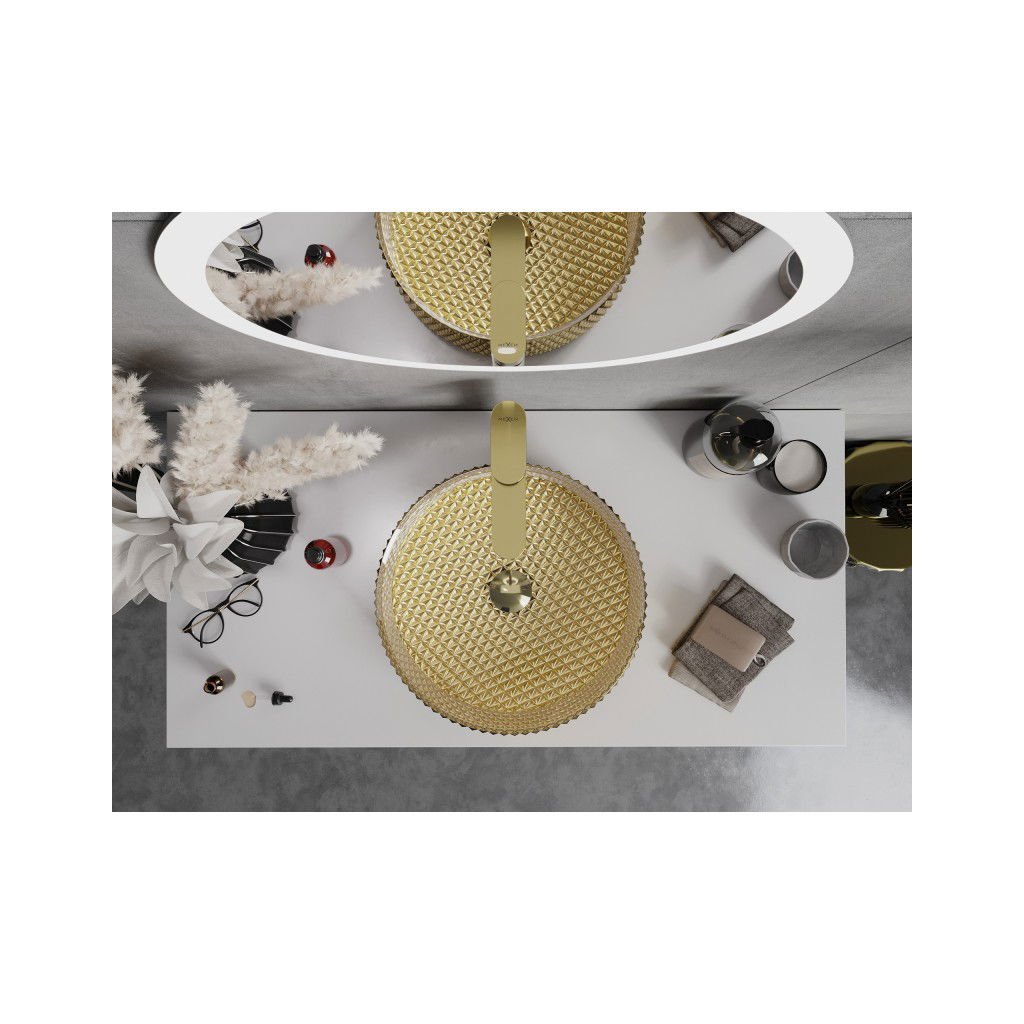 Mexen Aura, lavoar de blat din sticlă 39 × 39 cm, auriu, 24013952