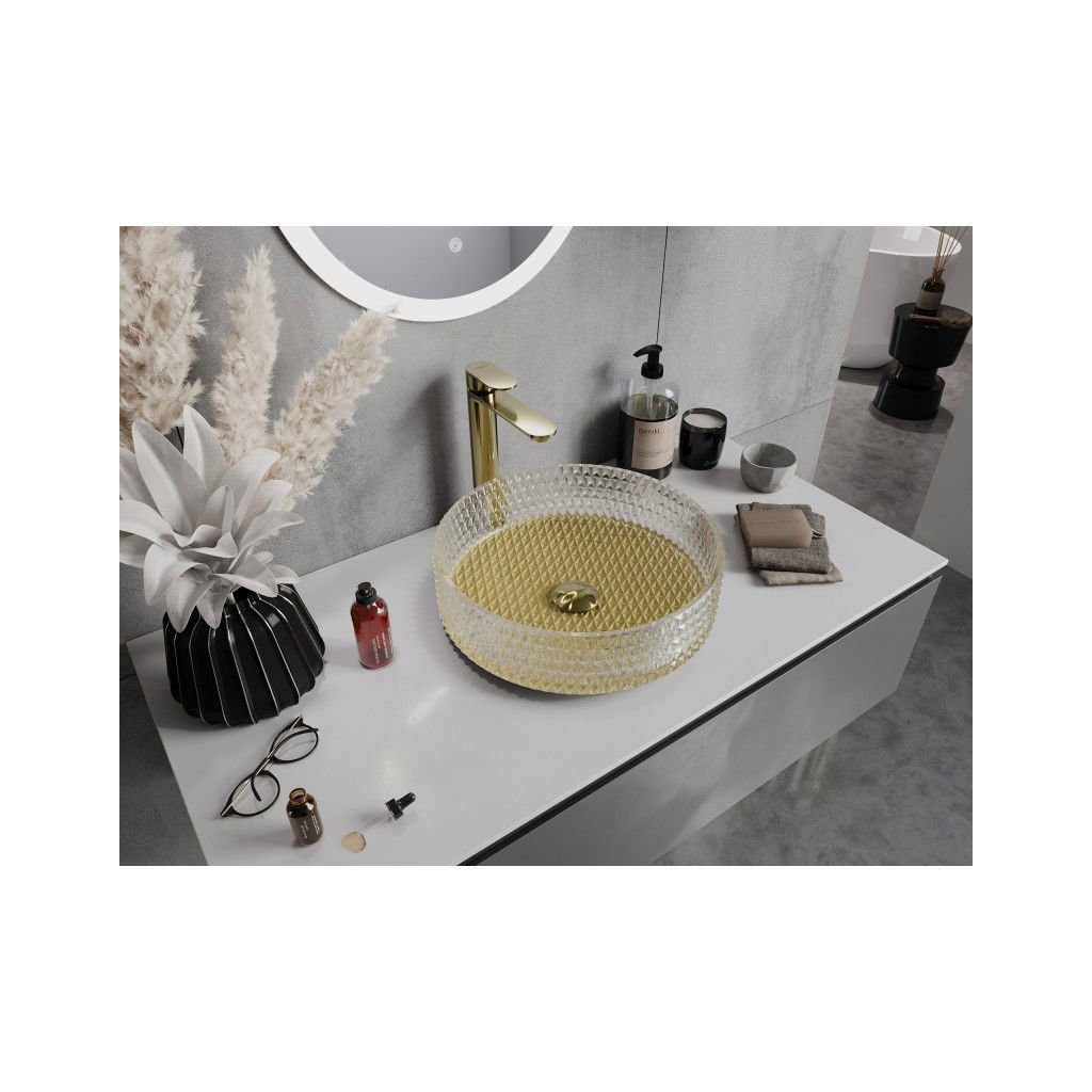 Mexen Aura, lavoar de blat din sticlă 39 × 39 cm, transparent / auriu, 24013951