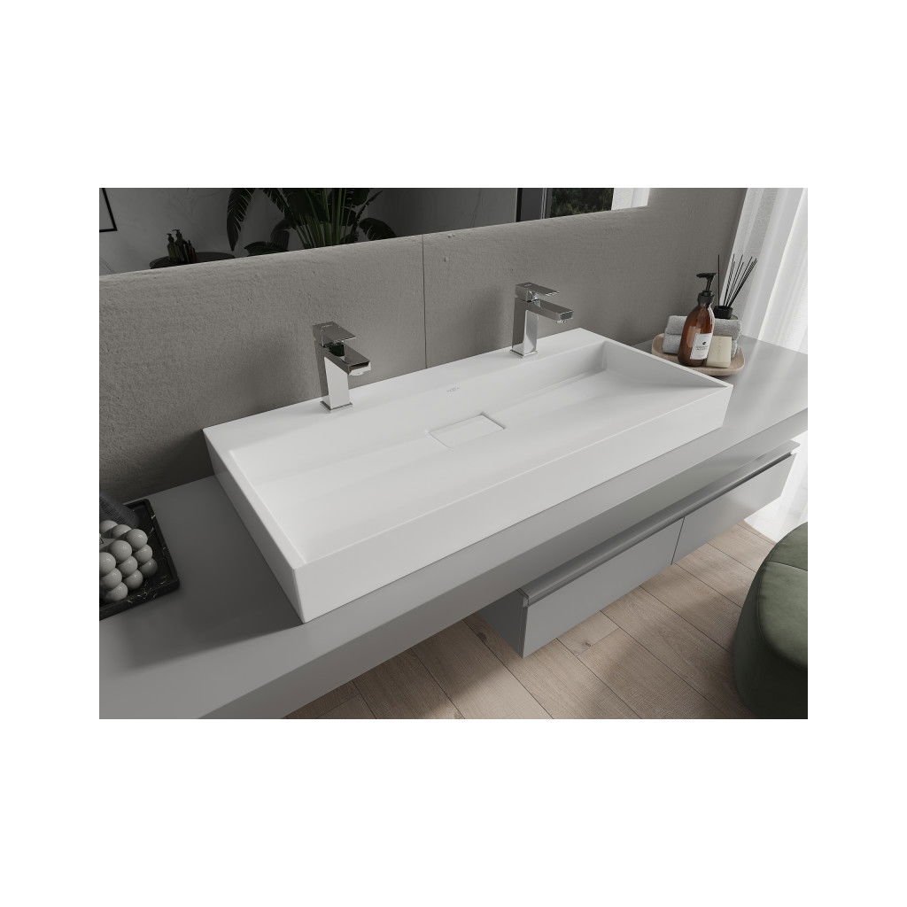 Mexen Ava, chiuveta blat conglomerat 2/O 100 x 46 cm, alb, 23011002