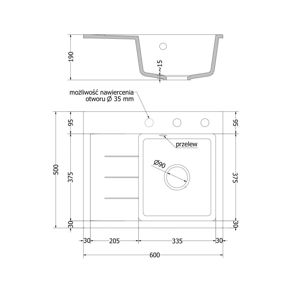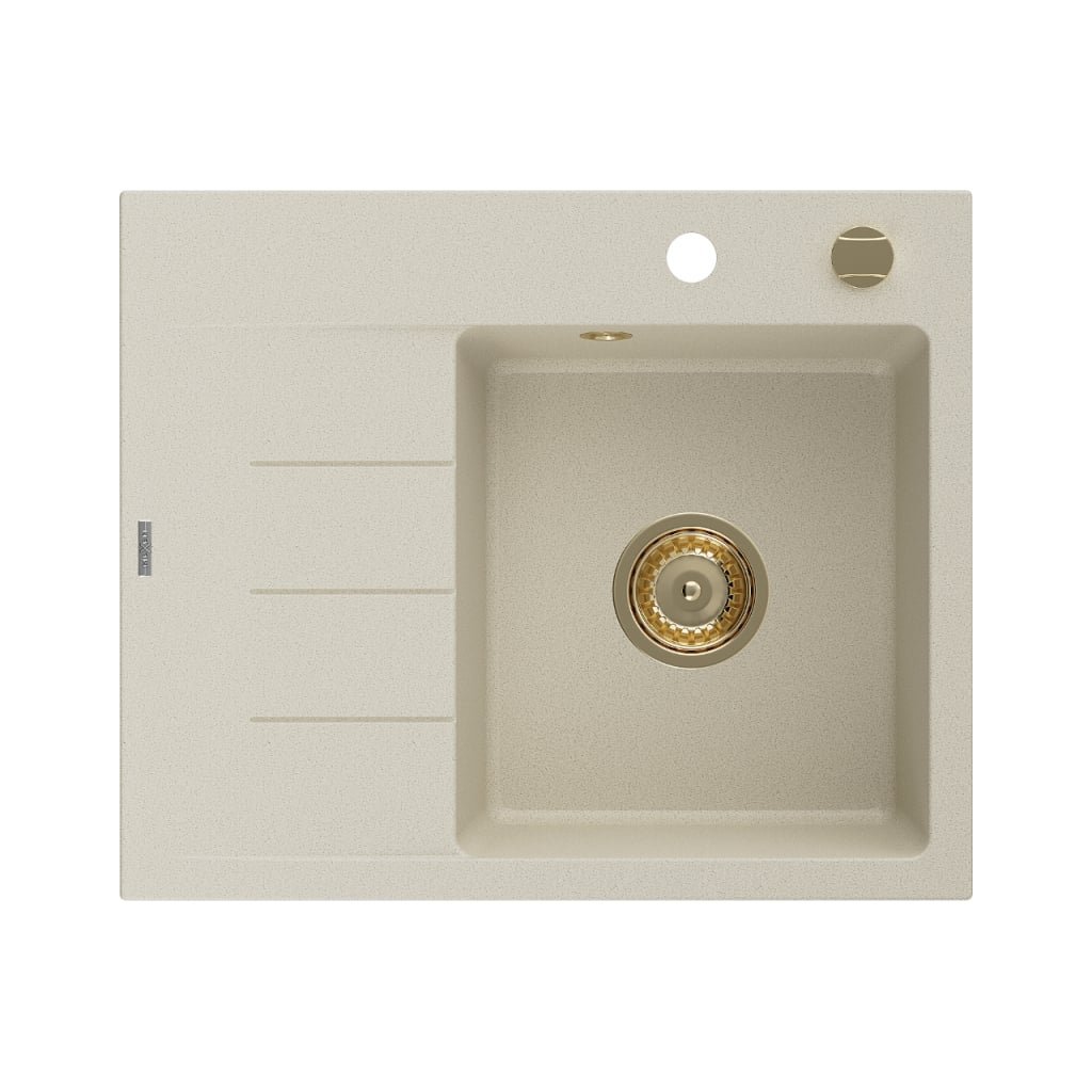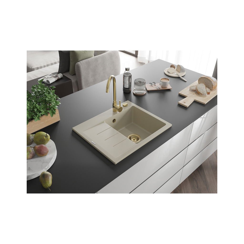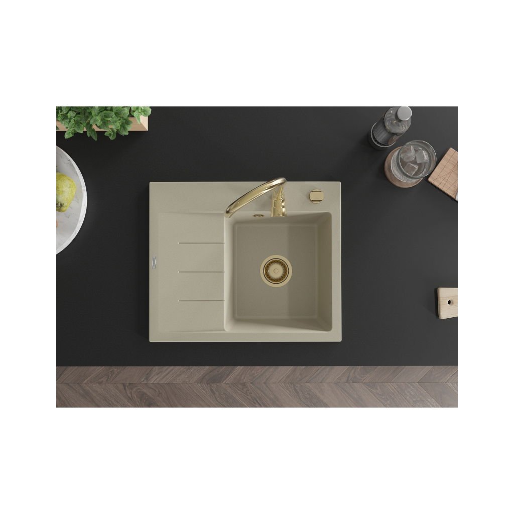 Mexen Ben, chiuveta granit cu 1 camera 600x500x190 mm, dreapta + sifon auriu, bej, 6523605000-69-G