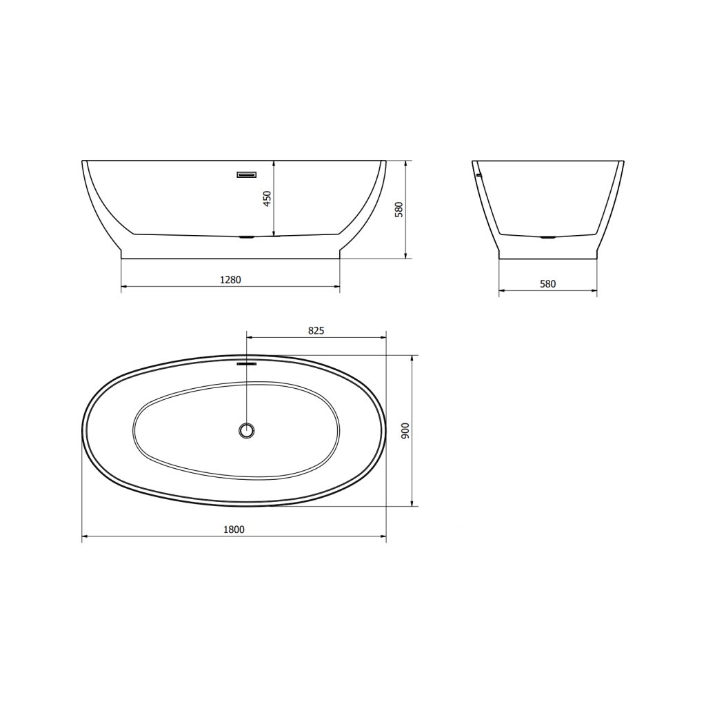 Mexen Bilbao, cadă de sine stătătoare 180 x 90 cm, alb, preaplin negru mat, 51311809000-70