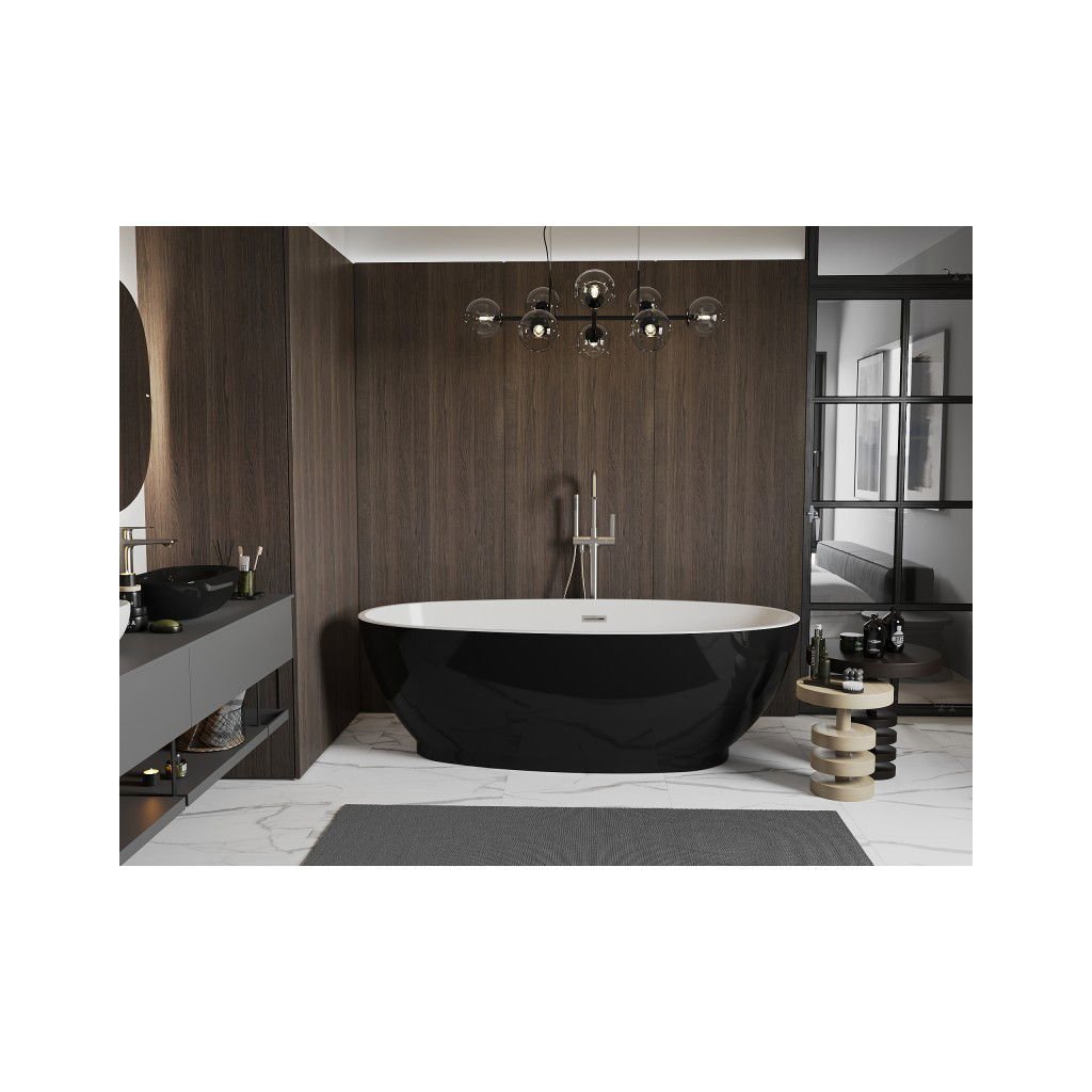 Mexen Bilbao, cadă de sine stătătoare 180 x 90 cm, alb-negru, preaplin din oțel periat, 51311809075-97
