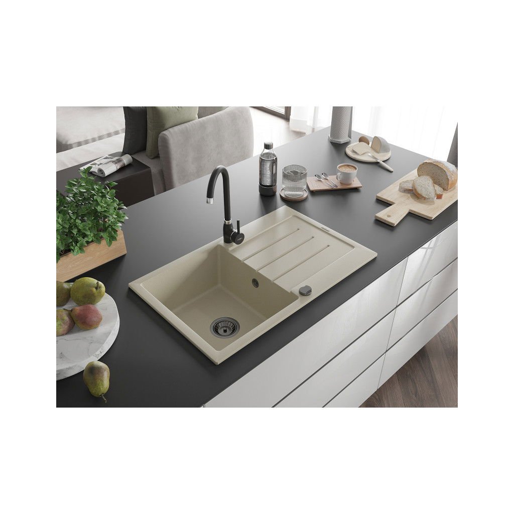 Mexen Bruno, chiuveta granit 1 camera cu scurgere 795x495x200 mm si robinet de bucatarie negru Telma, bej, 6513-69-670200-70