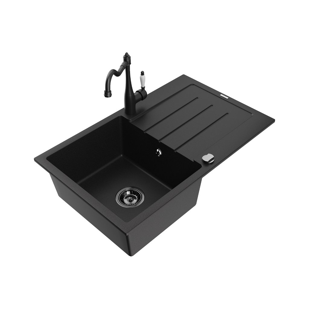 Mexen Bruno, chiuveta granit 795x495x200 mm, robinet cu 1 camera si chiuveta Carla, negru, 6513-77-670700-70-B