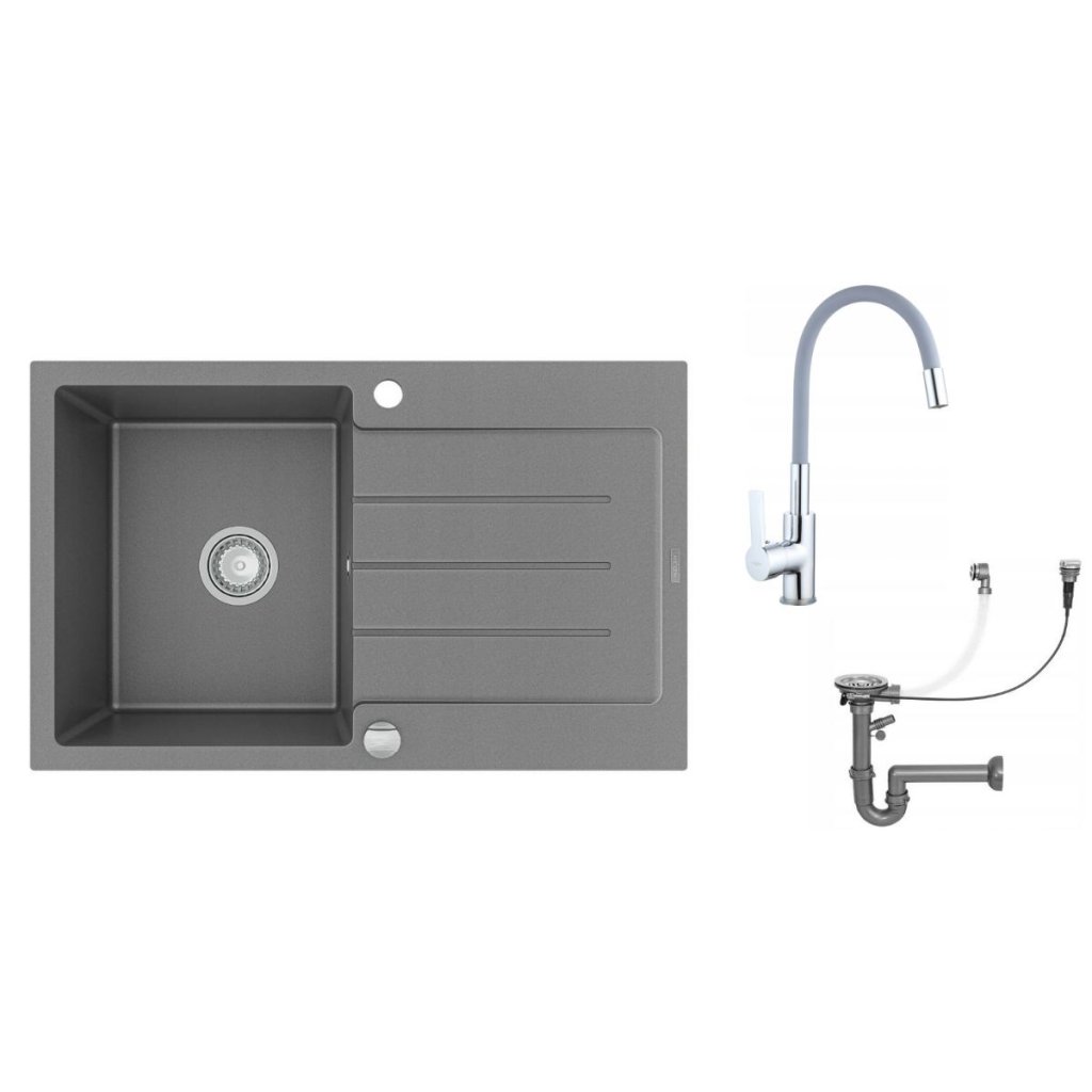 Mexen Bruno - chiuveta granit 79,5x49,5cm + baterie Flex, 1 camera, gri, 6513791010-71-Flex