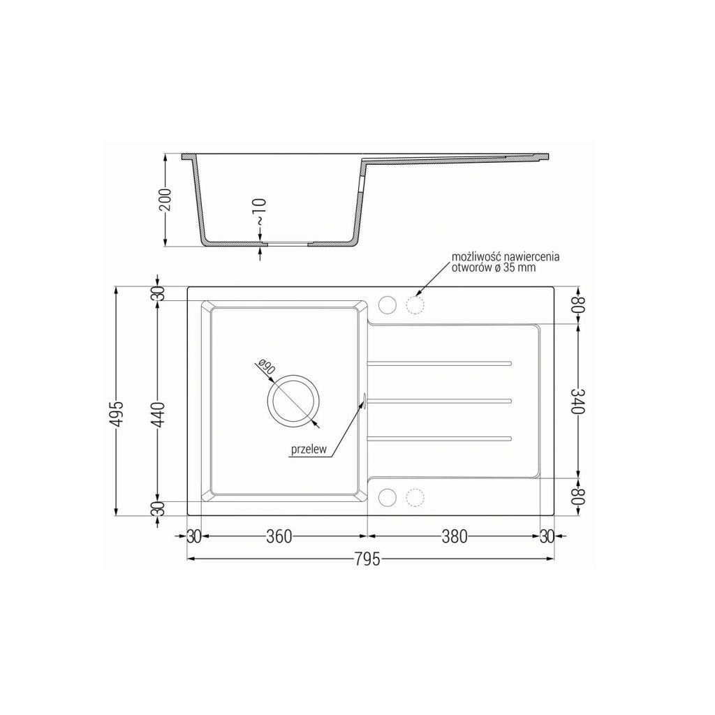 - Orificiu de scurgere: 3,5”; fi = 90 mm