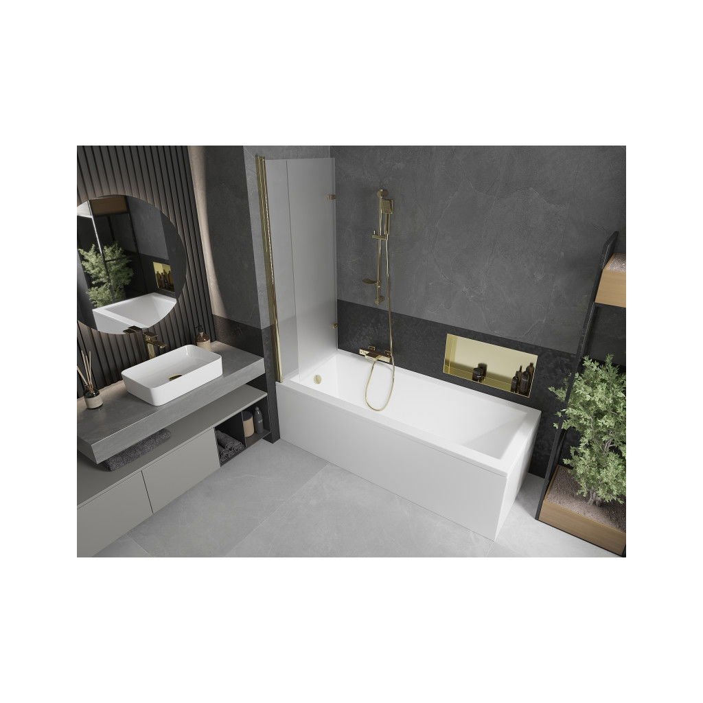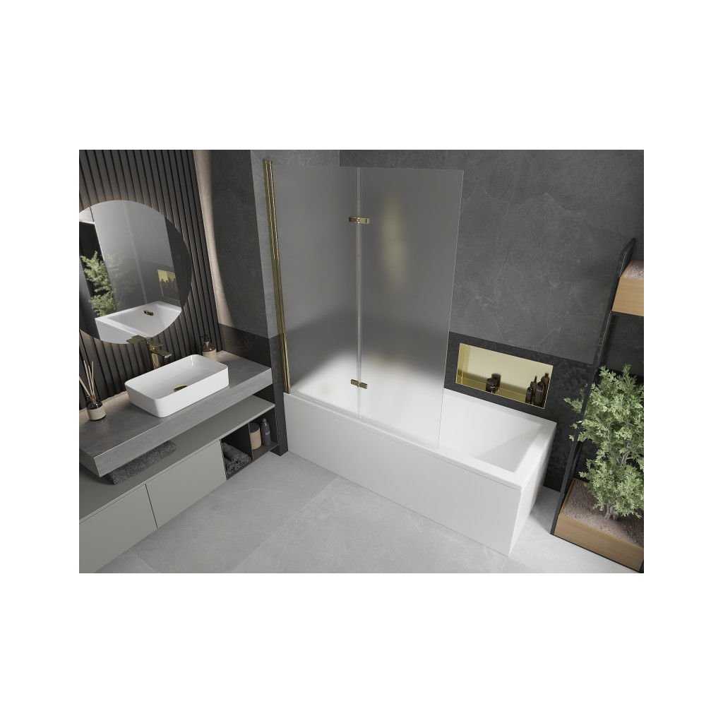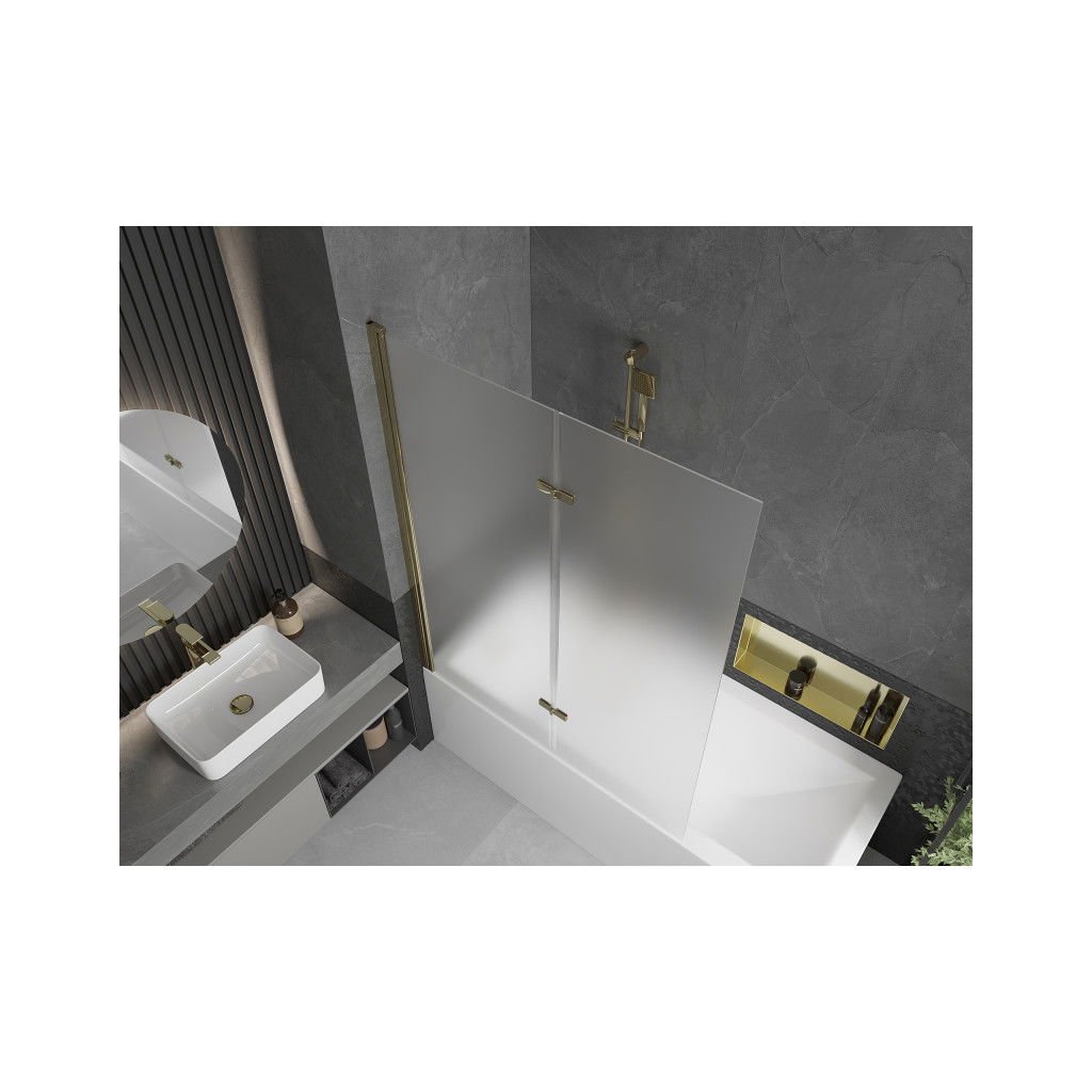 Mexen Castor, paravan de baie cu 2 aripi 120 x 150 cm, aripă pivotantă, sticlă mată 6 mm, profil auriu, 892-120-002-50-30