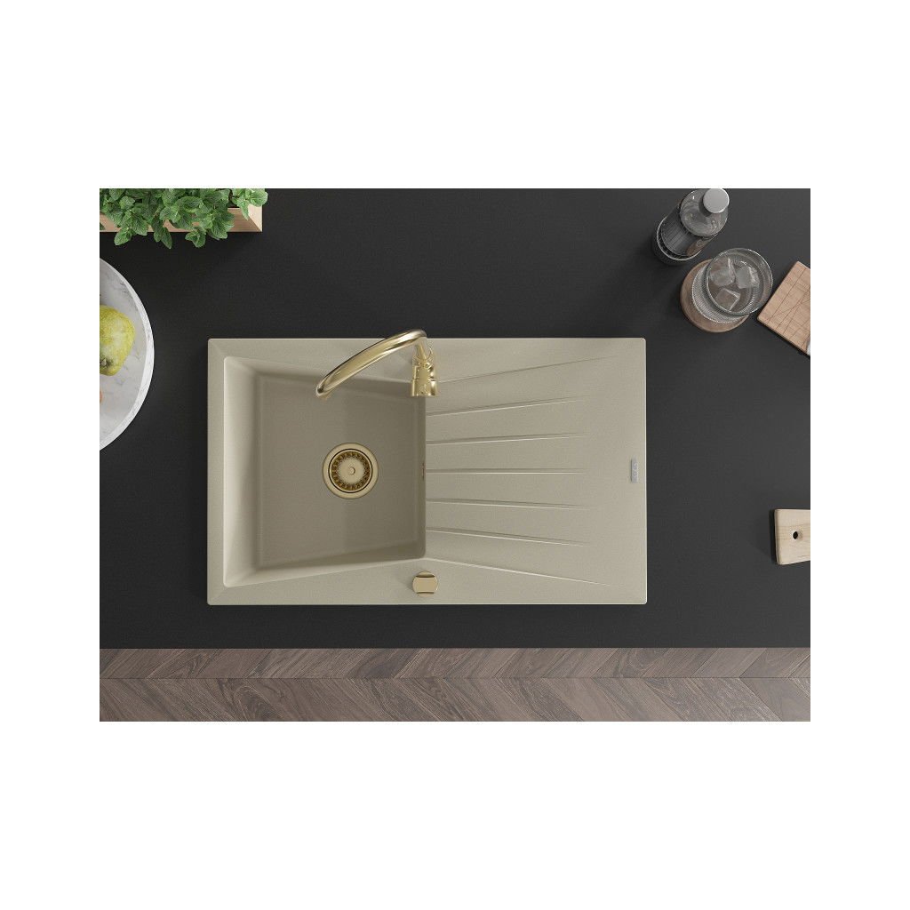 Mexen Cesar, chiuveta granit 775x470x190 mm, 1 camera, bej cu sifon auriu, 6514771010-69-G