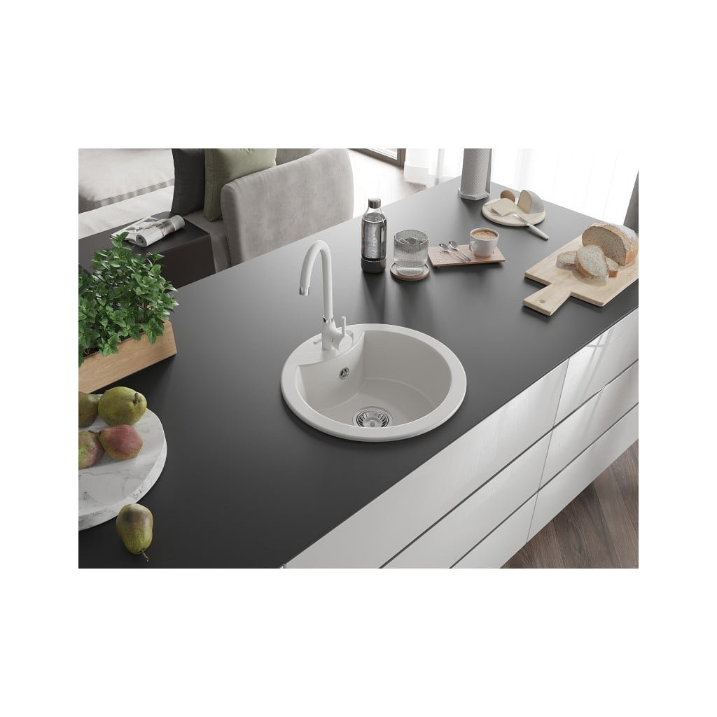 Mexen Diego, chiuveta granit 1 camera 49x49 cm si baterie de bucatarie Telma, alb, 6512-20-670200-20